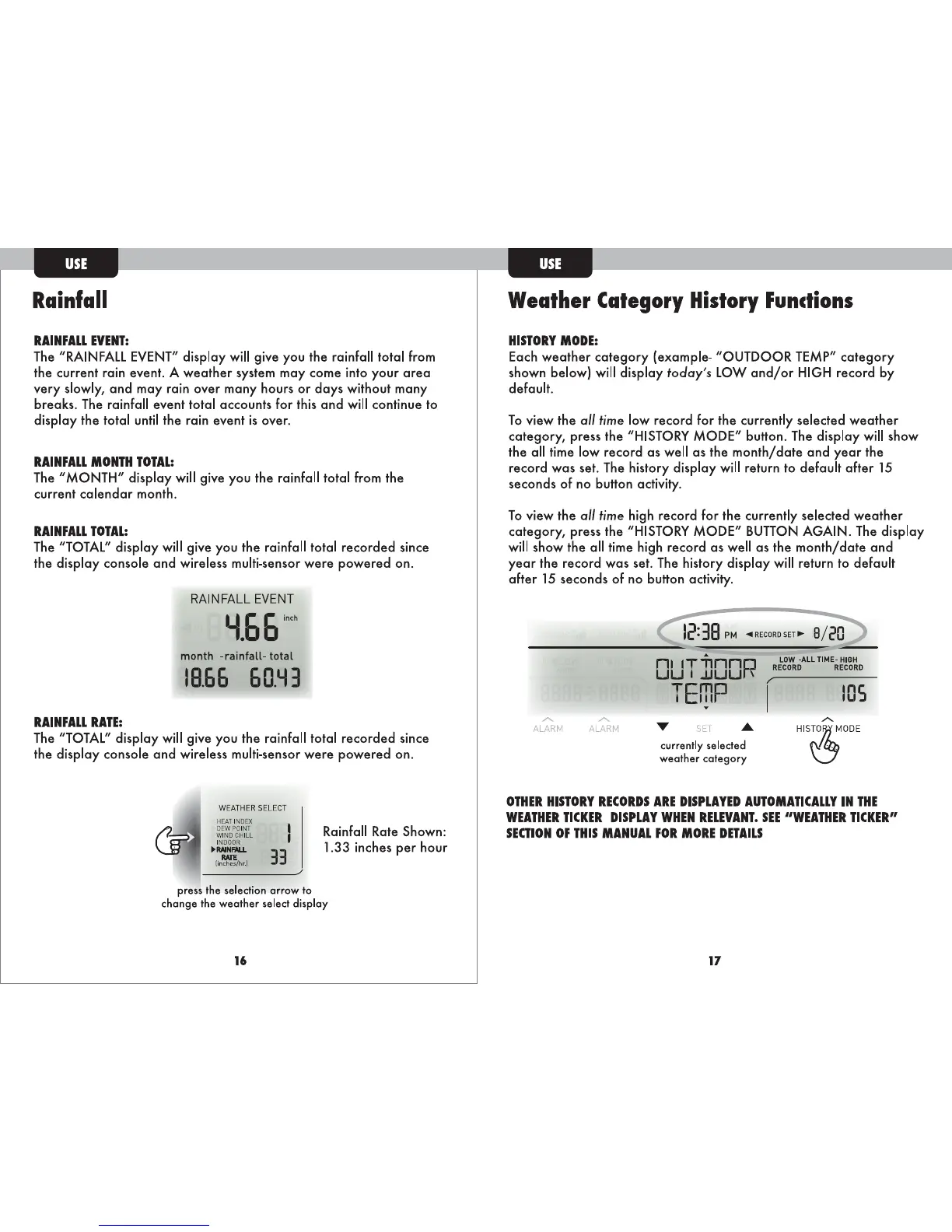 AcuRite 01515 - Rainfall Measurement; Weather History Functions