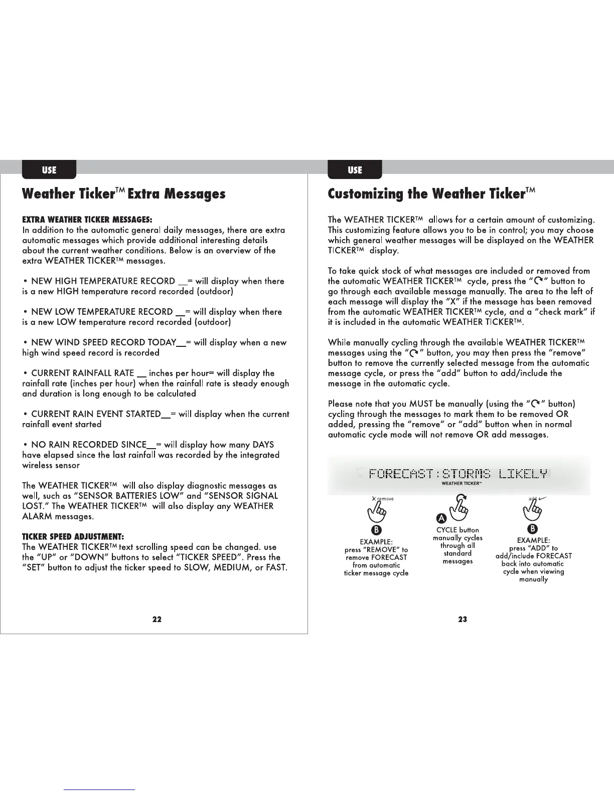 AcuRite 01515 - Weather Ticker Extra Messages; Customizing the Weather Ticker; Extra Weather Ticker Messages; Ticker Speed Adjustment