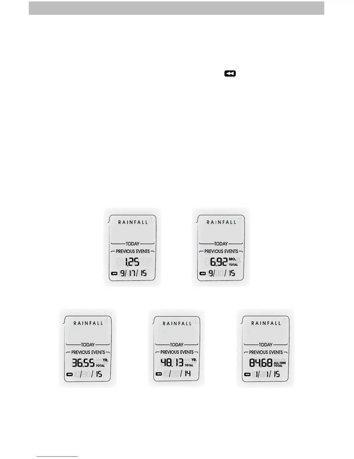 Press the “RAINFALL” button to review rainfall records. The
