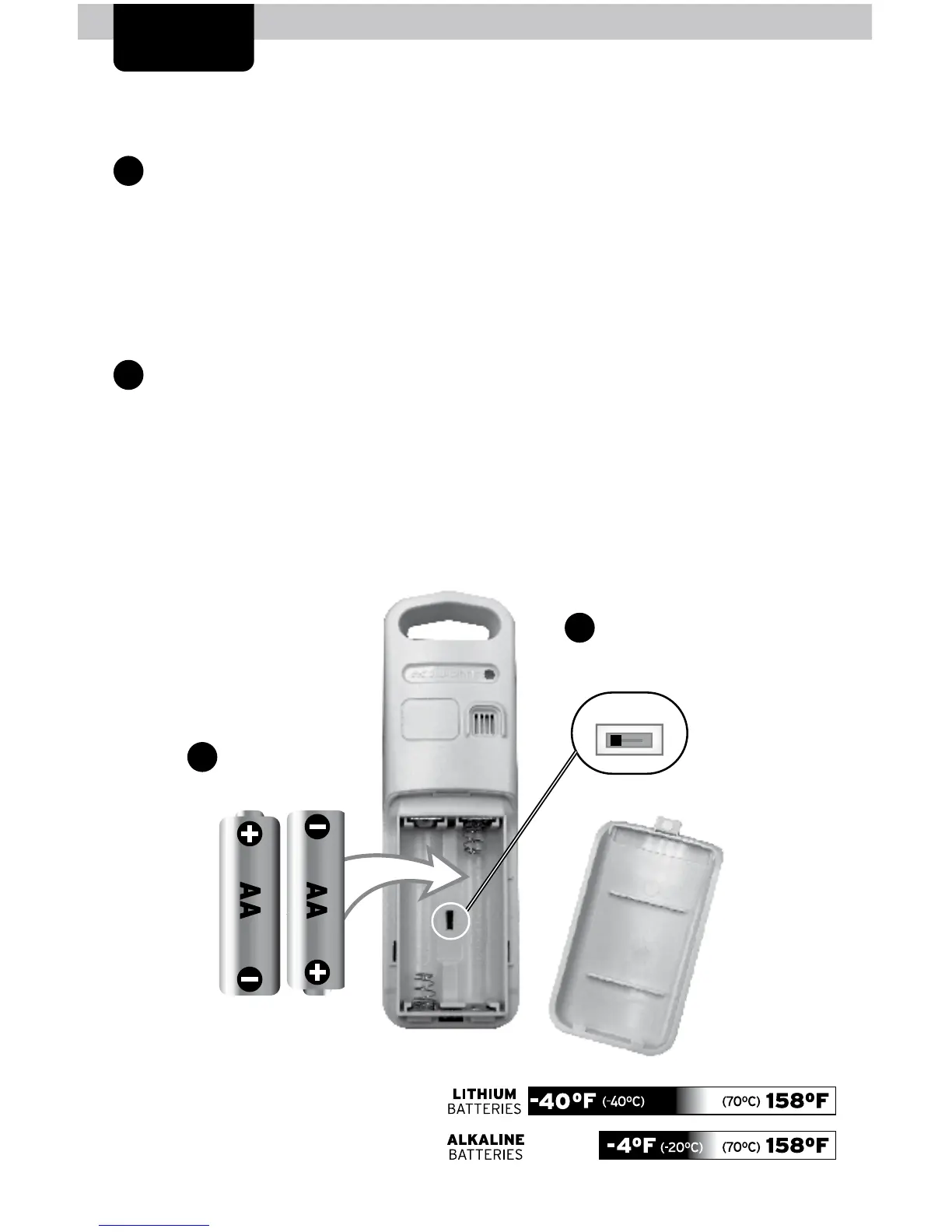 2. Insert 2 x AA batteries into