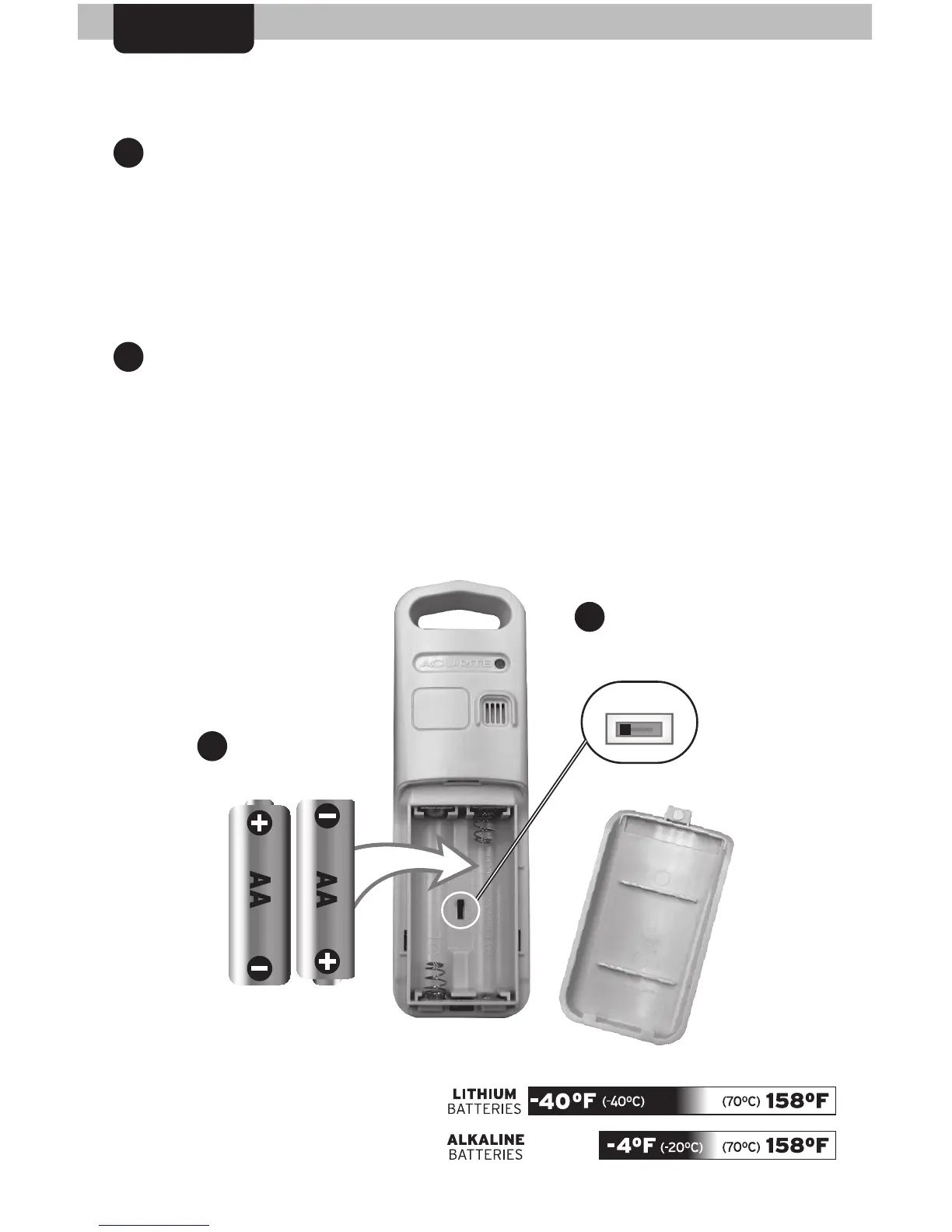 2. Insert 2 x AA batteries into