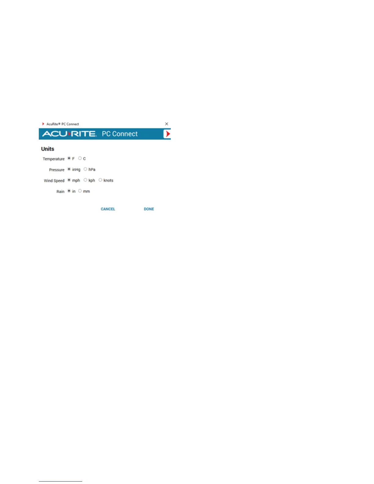 AcuRite 06006 - Setting Display Units in PC Connect; Configuring Units for Data Transfer
