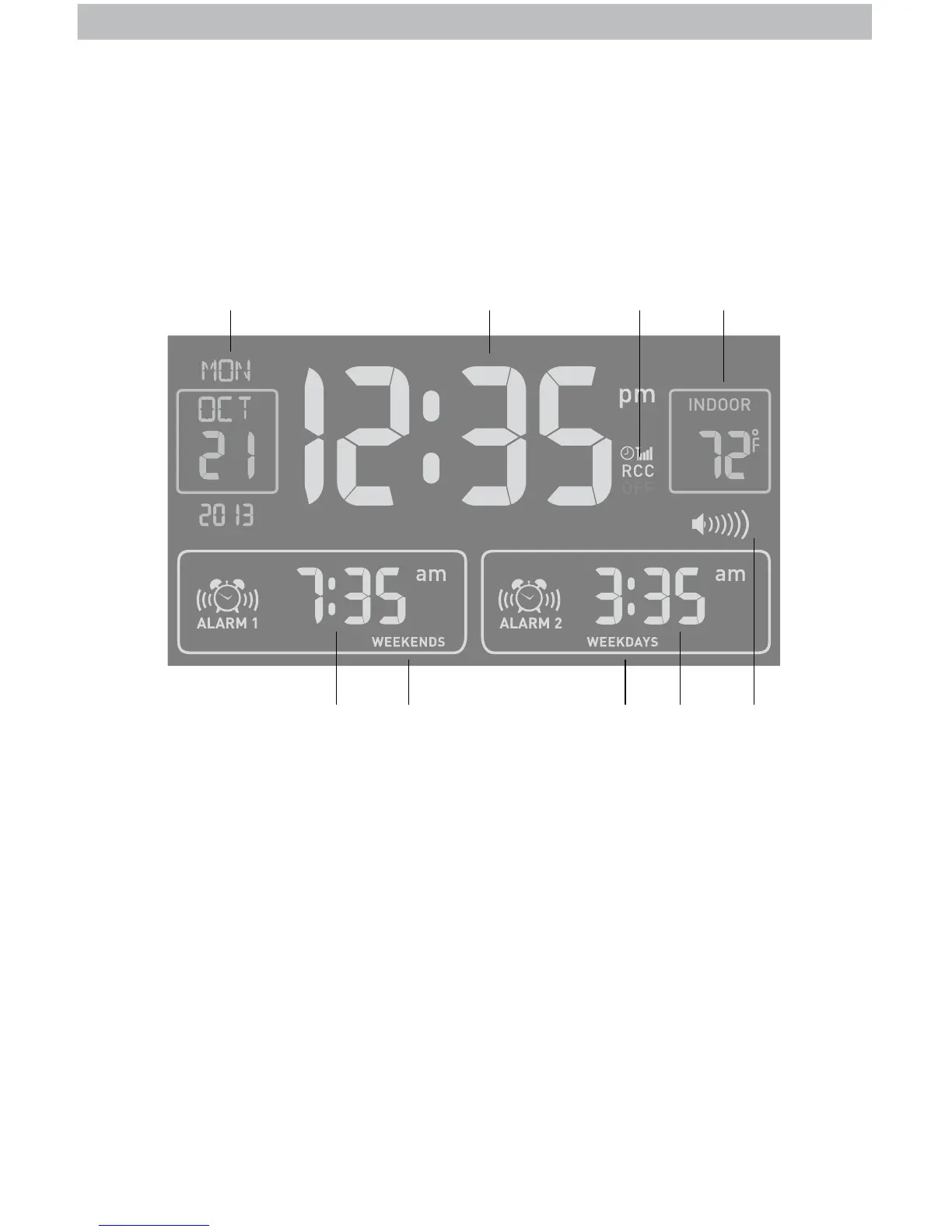 AcuRite 13024 - Clock Display Indicators; Display Overview