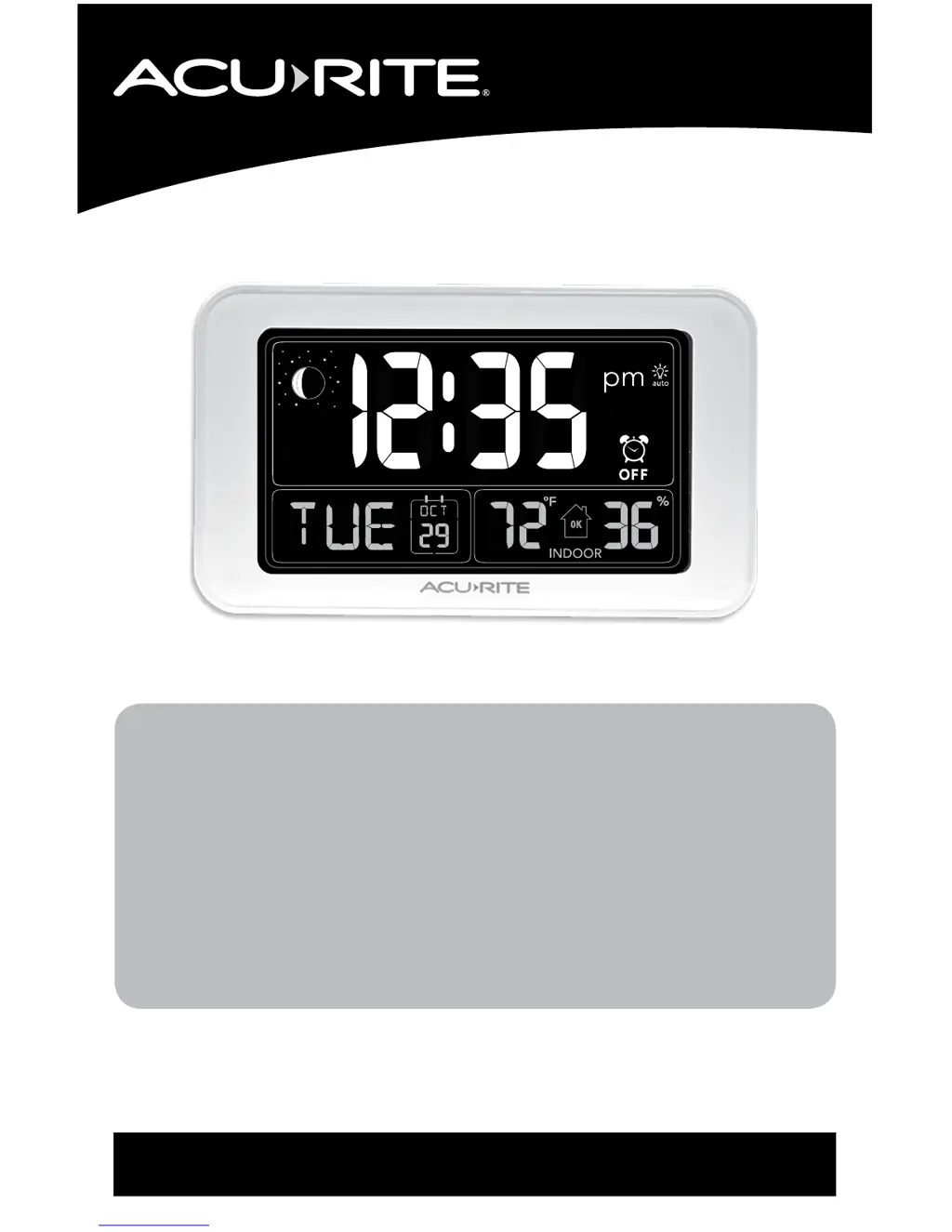 If your AcuRite Alarm Clock's display is too dark, hard to read, or not working, ensure the power adapter is properly plugged in. Also, check that the batteries are correctly installed and replace them if needed. You can increase the brightness using the “ ”/ “ ” buttons on the side of the clock. For optimal viewing, position the clock slightly below your eye level.