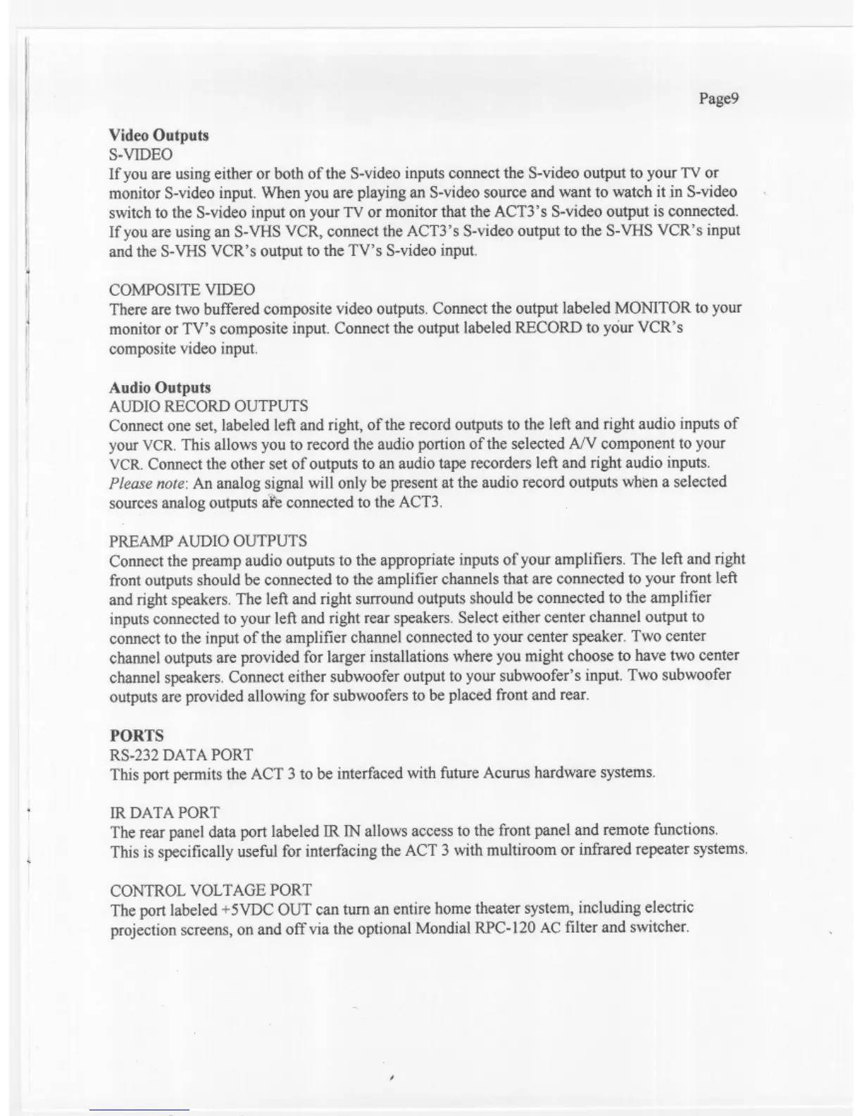 Acurus ACT3 - Ports; Composite Video; Audio Record Outputs; Preamp Audio Outputs
