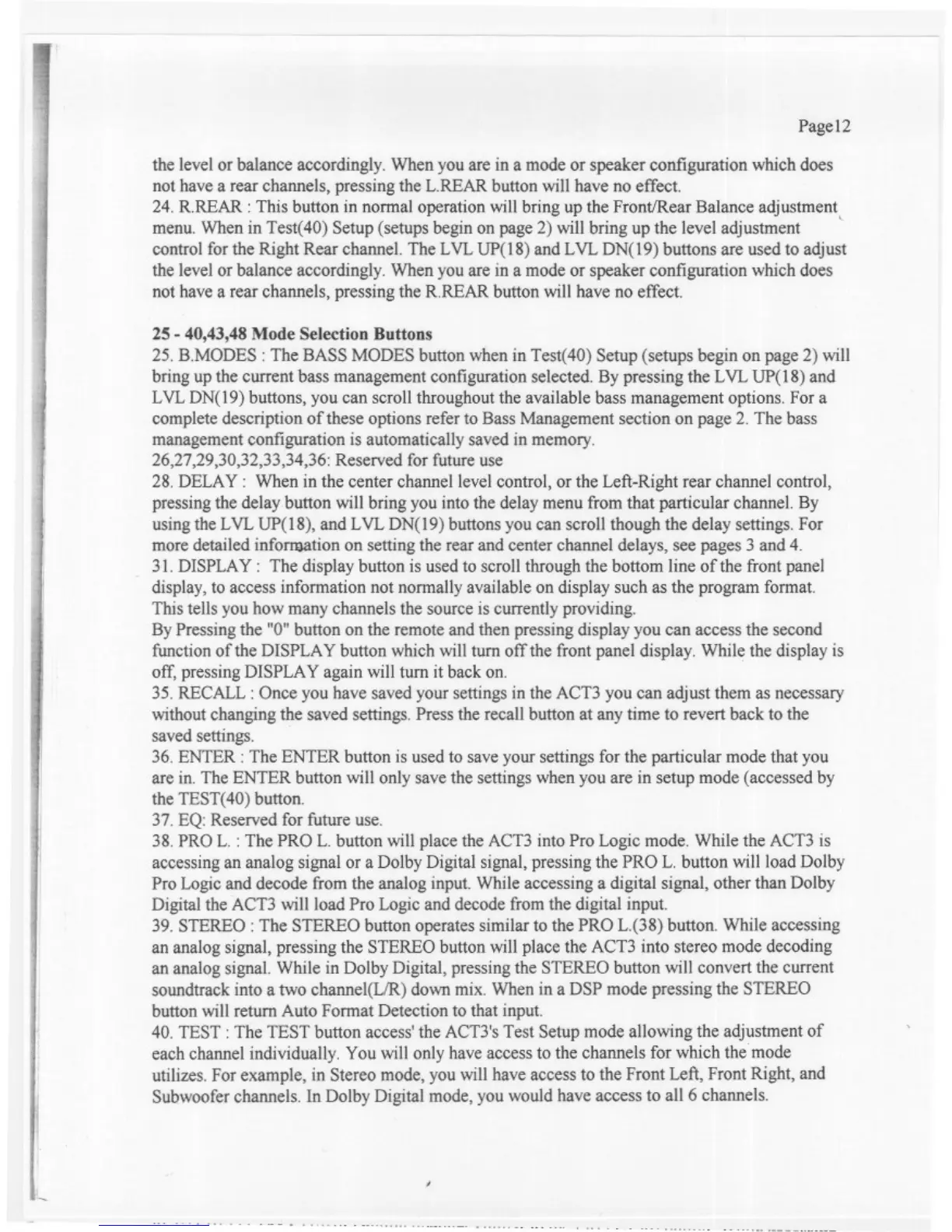 Acurus ACT3 - Mode Selection Buttons