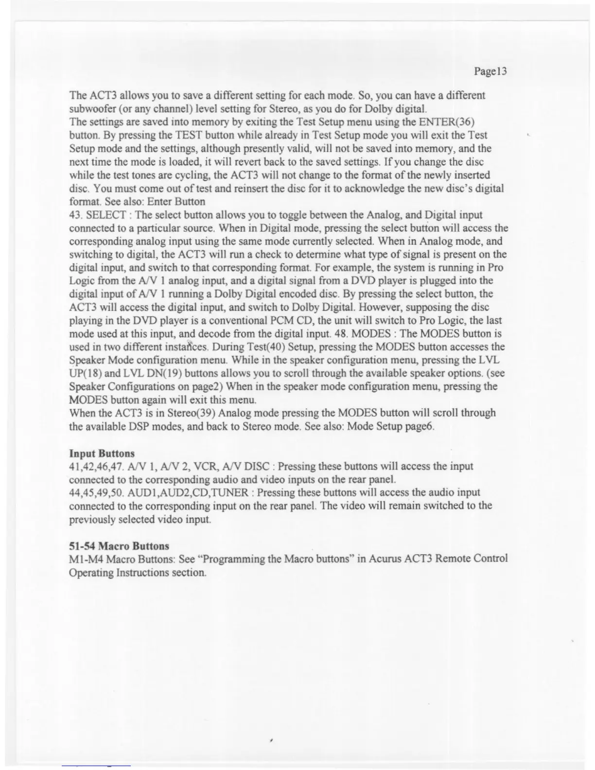 Acurus ACT3 - Reset Procedure; TROUBLESHOOTING; My a;v system has a low frequency hum.; I hear ticks through the speakers when I use certain functions of my video player.