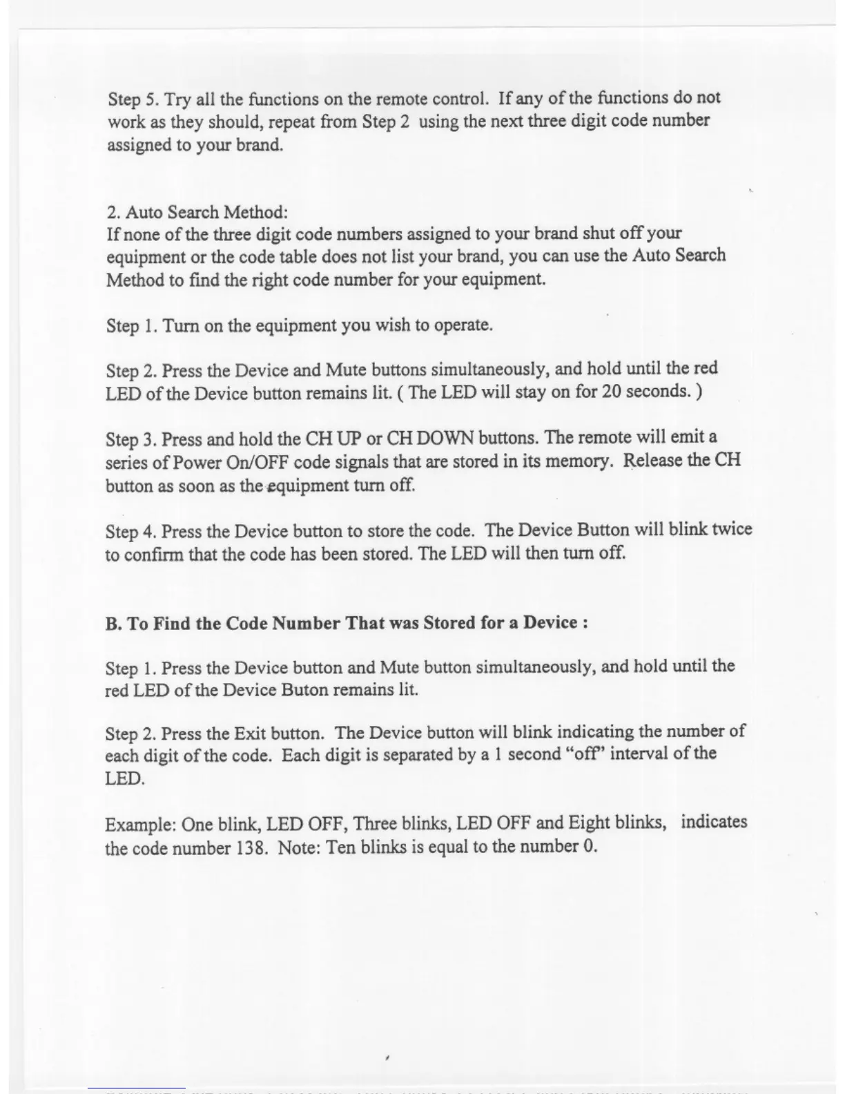 Acurus ACT3 - Auto Search Method; Finding Stored Remote Codes