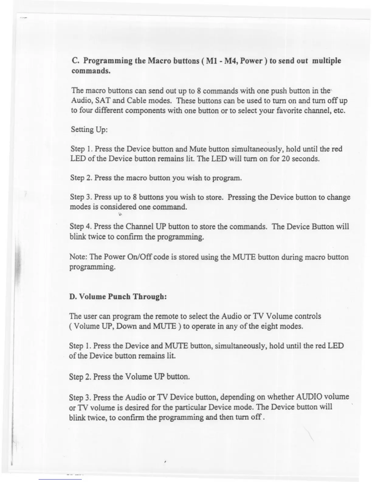Acurus ACT3 - Programming Macro Buttons; Volume Punch Through