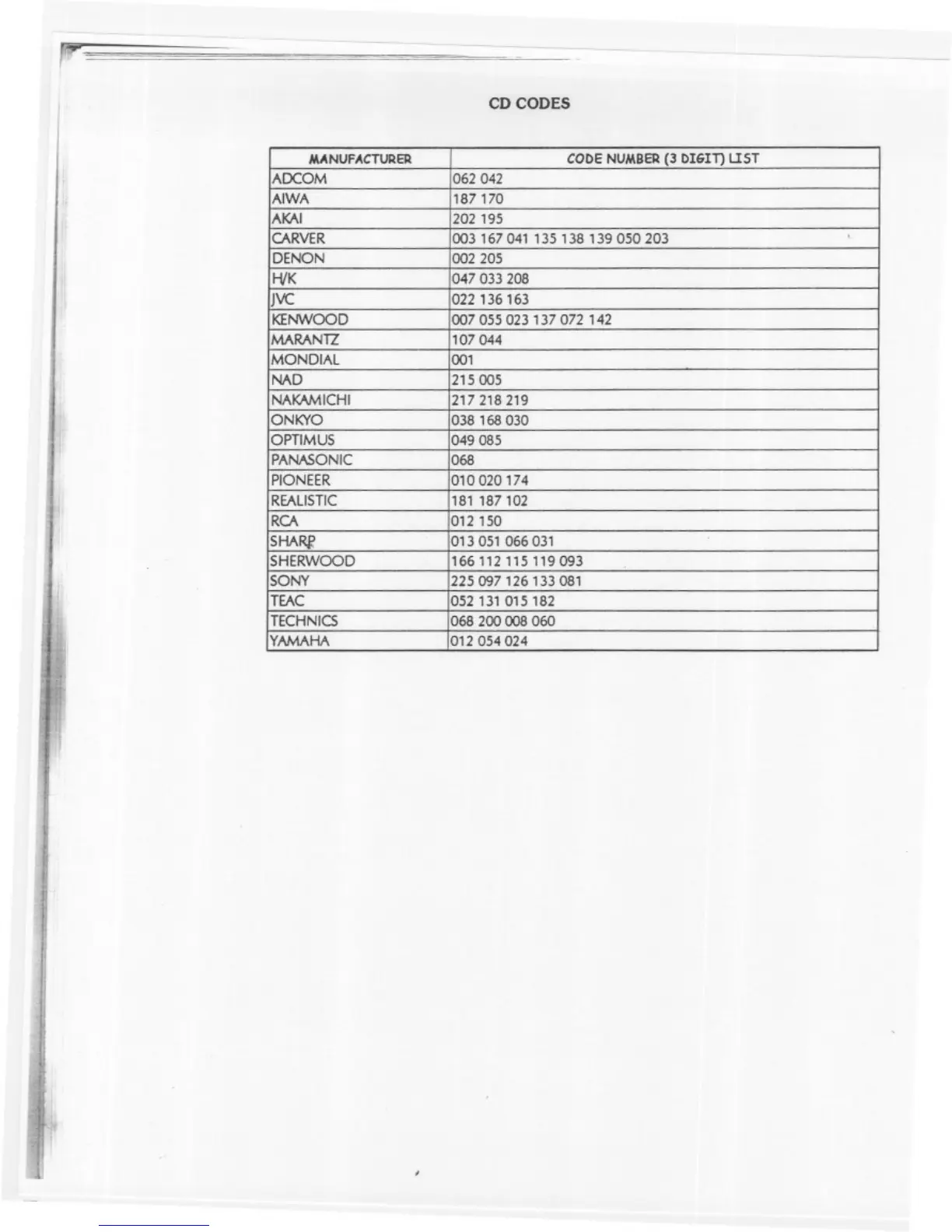 Acurus ACT3 - CD Codes