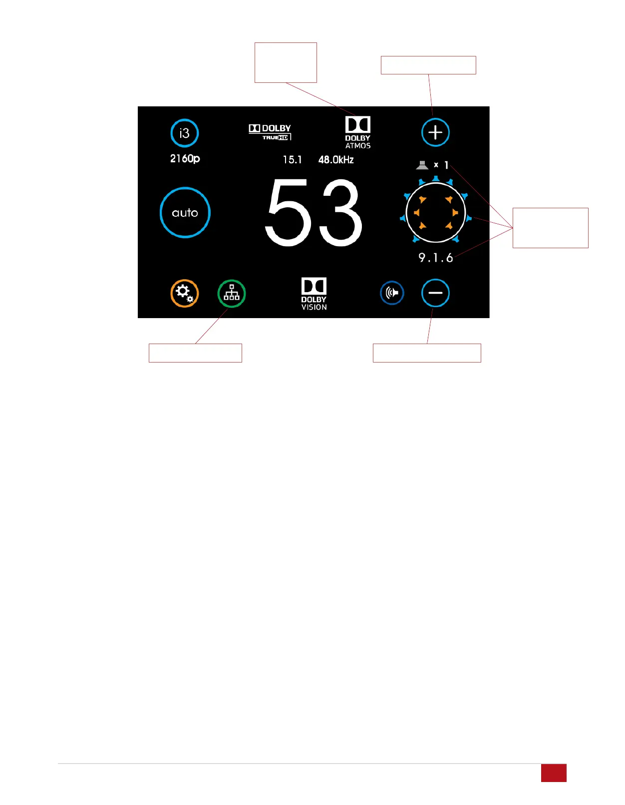 Loudspeaker Format Indicator: To the far right in the main
