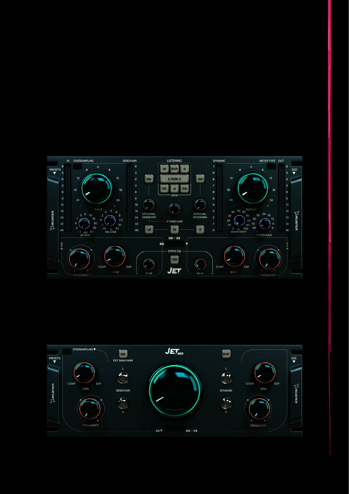 Jet is Acustica’s new Dynamic equaliser, unlike our previous dynamic eqs it uses algorithmic