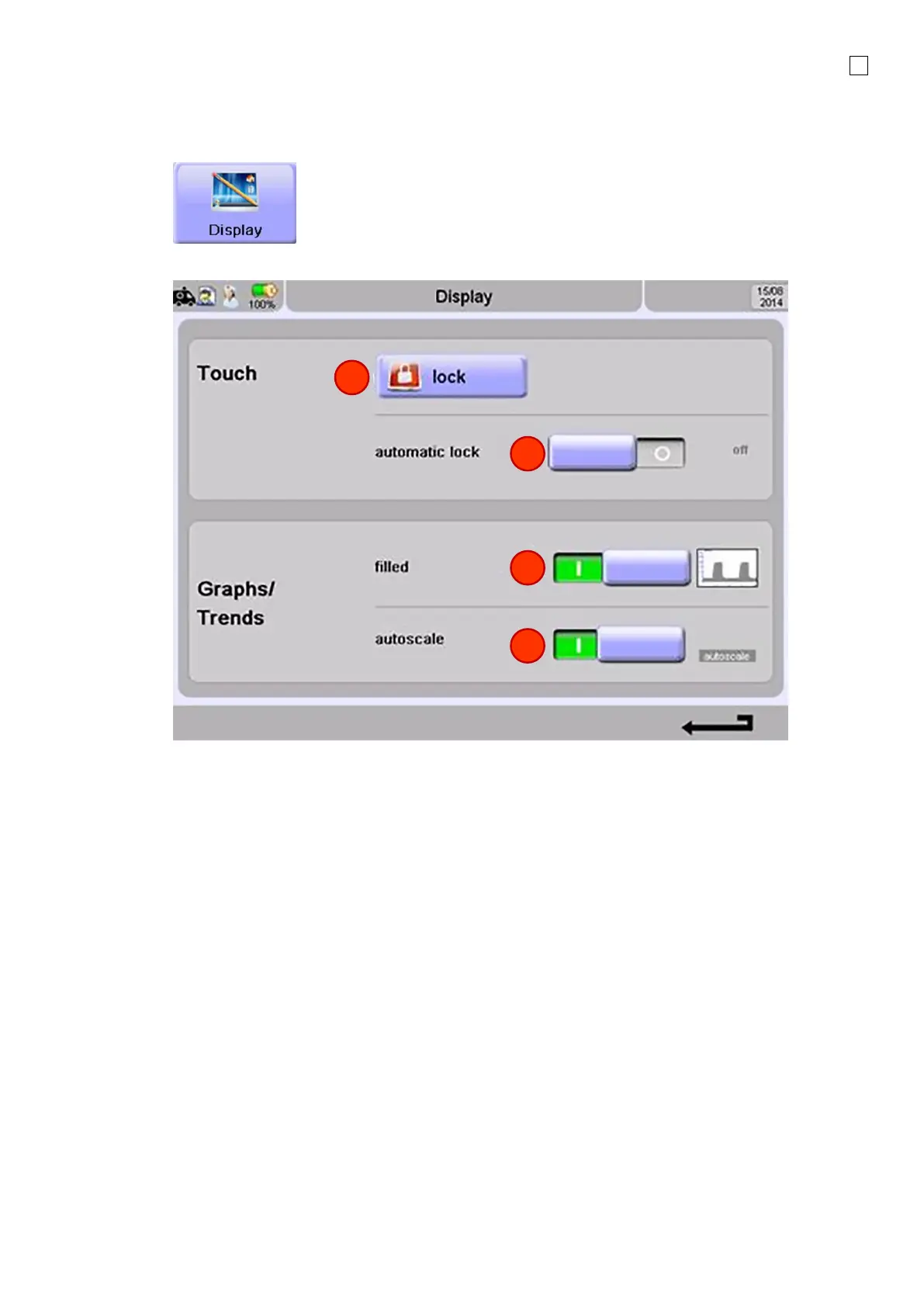 2. Automatic lock activated / deactivated. Touchscreen automatically locks after a set time.