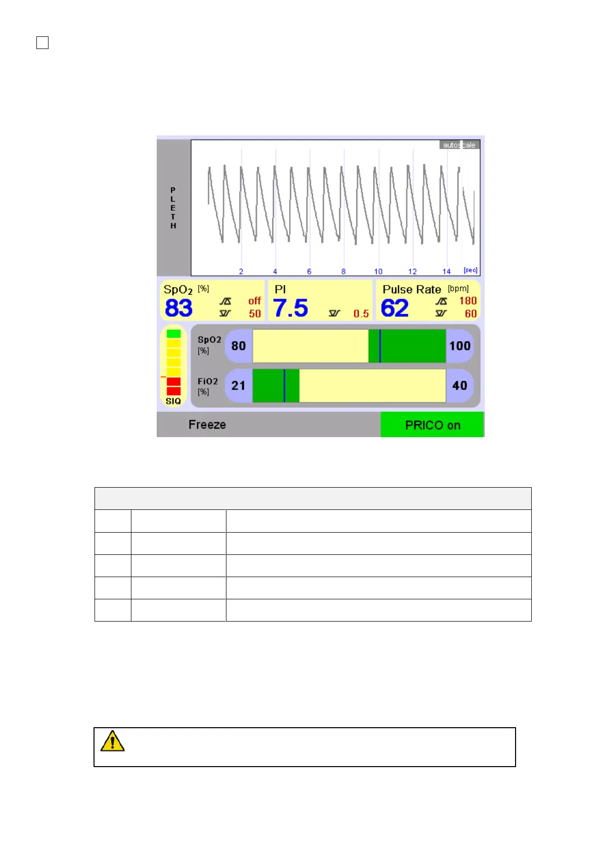 the appropriate alarm limits for the patient, before switching on PRICO.