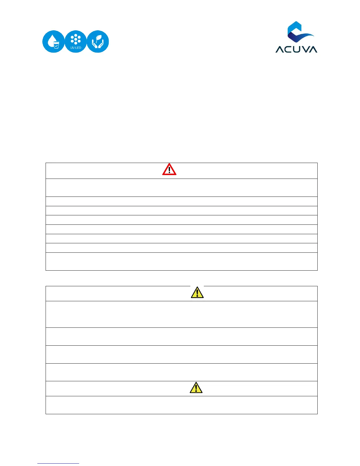 Acuva Technologies UV-LED Water Purification Systems (the “device”). Please read carefully.