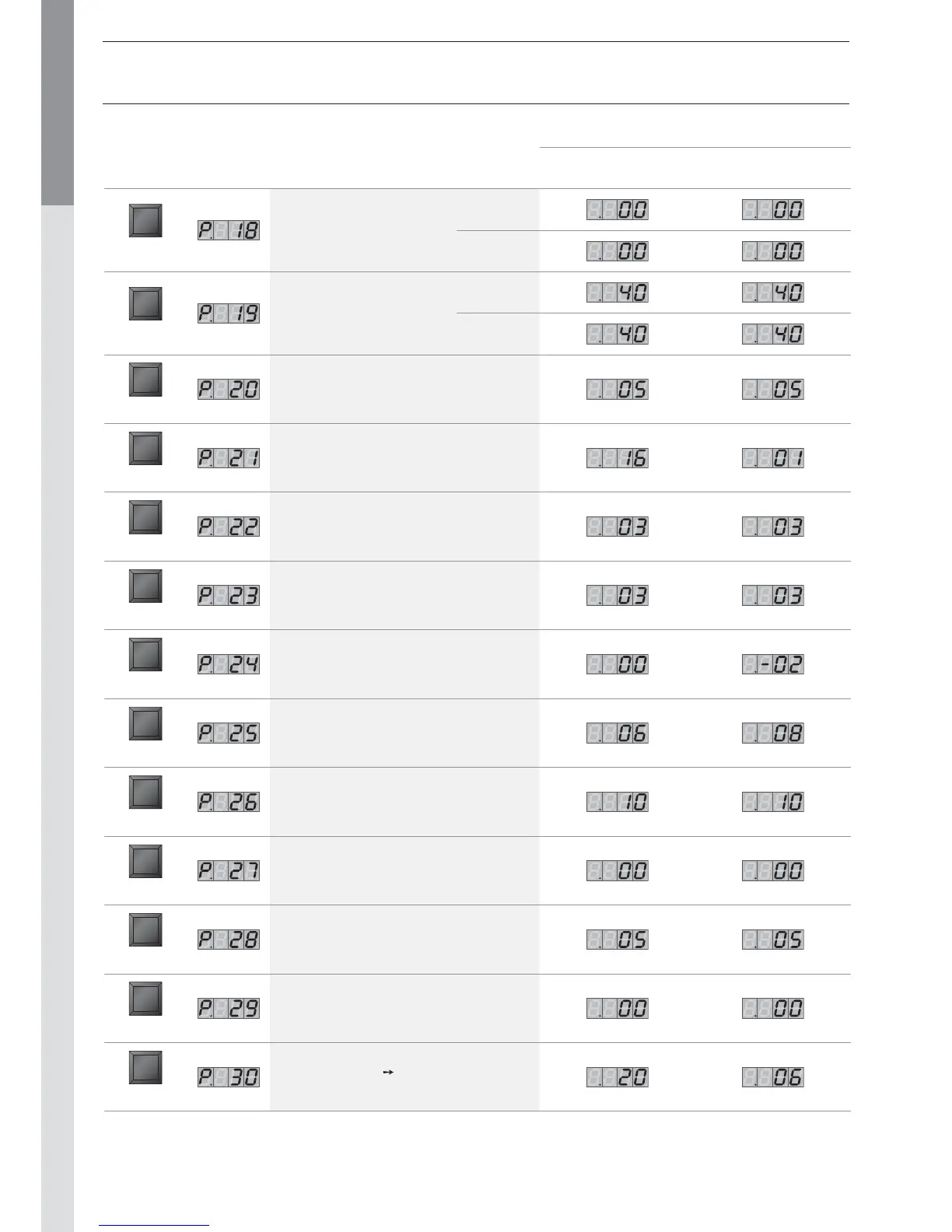 Key Screen Description of parameters Prestige 50 Prestige 75