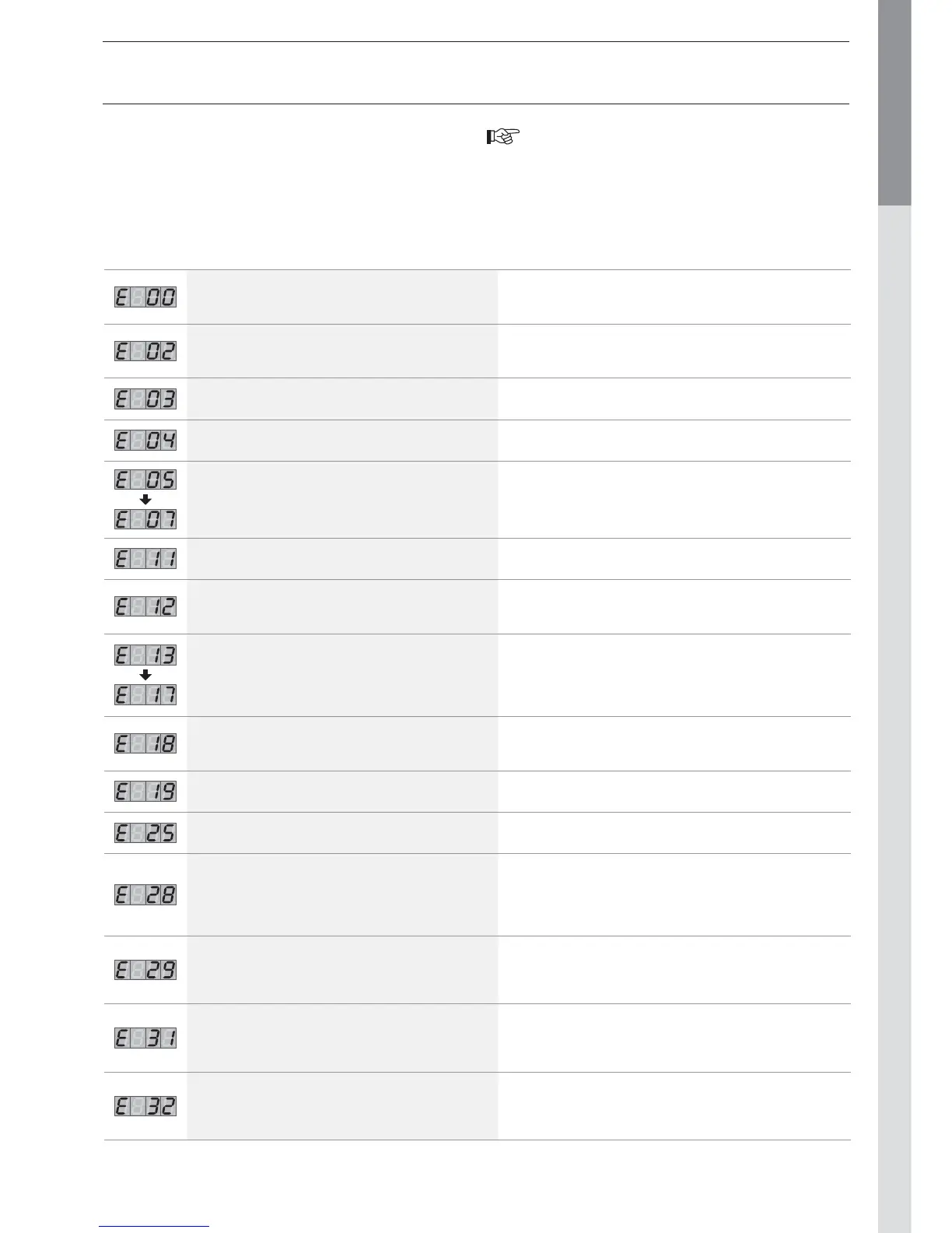 Codes Description of the fault Resolution of the fault