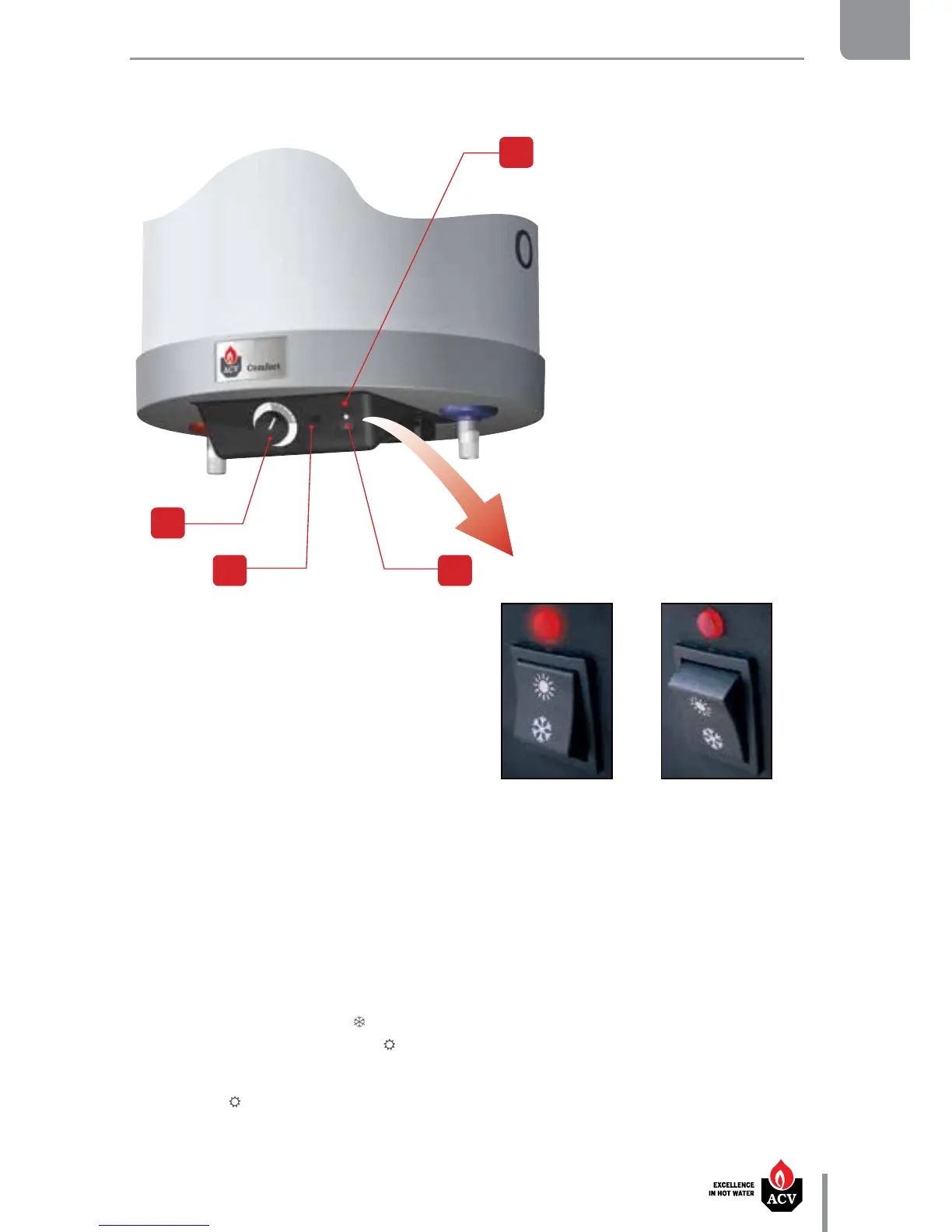 3. Summer / Winter switch - To activate the heating pump of the installation/deactivate the