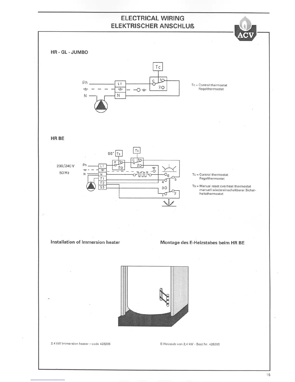ACV HR 321 - Electrical Wiring Connections; Electrical Connection Schemes; HR-GL-JUMBO Wiring; HR BE Wiring