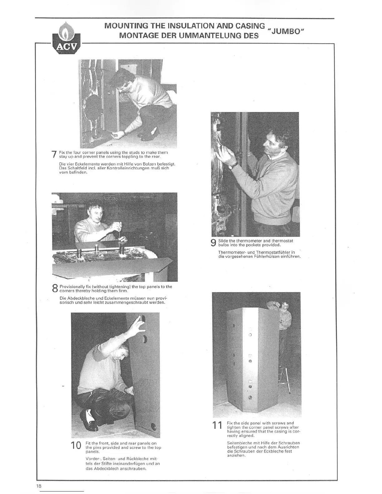 ACV HR 321 - JUMBO Tank Casing Assembly Steps; Corner Panel Installation; Provisional Top Panel Fixing; Thermometer and Thermostat Bulb Insertion