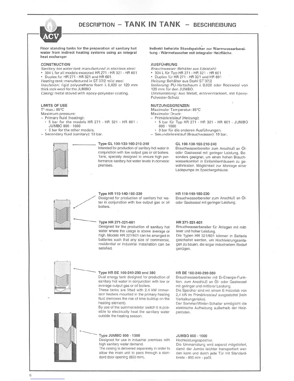 ACV HR 321 - ACV Tank Description and Specifications; General Tank Description; Construction Materials; Usage Limits