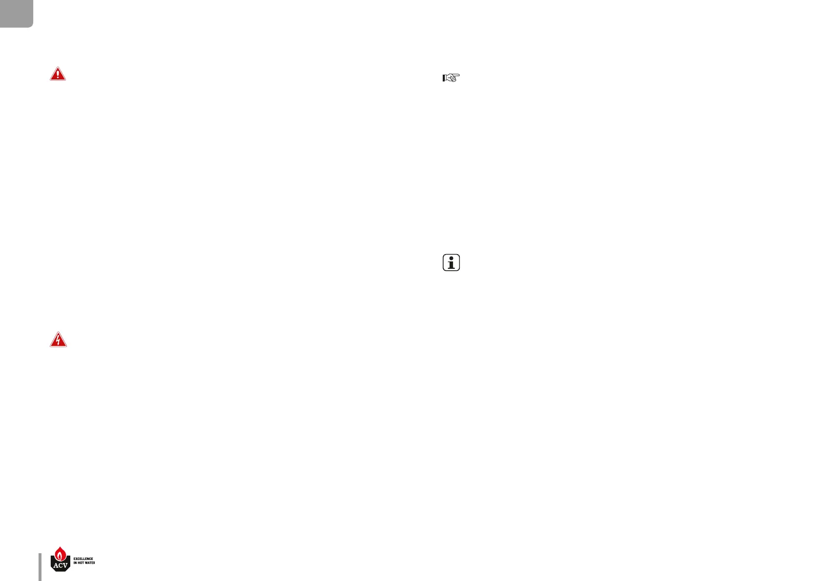 • ACV recommends using a pre-set thermostatic mixing valve in order to provide hot
