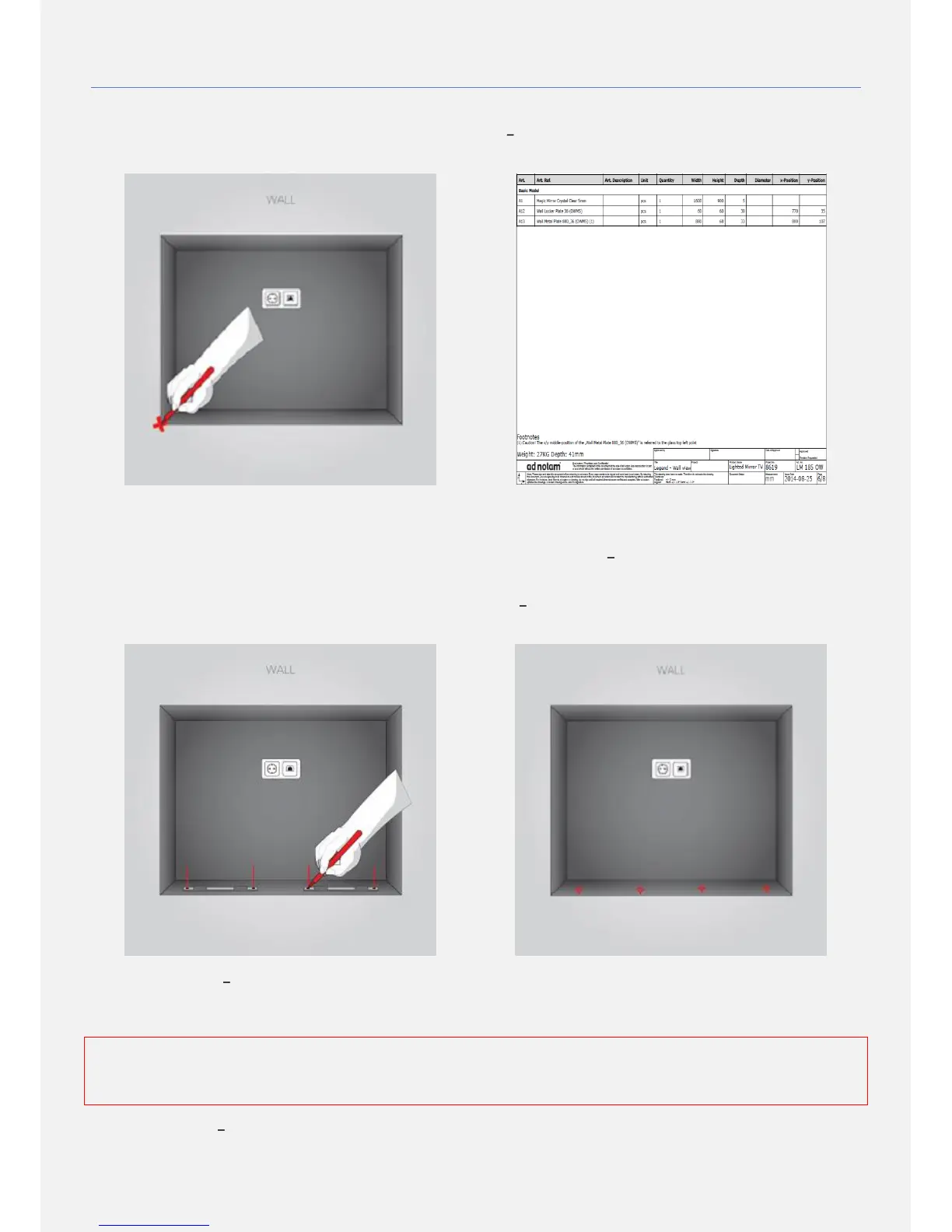 1. The following slides explain how to identify and mark the drilling points on the wall. ad notam provides different mounting