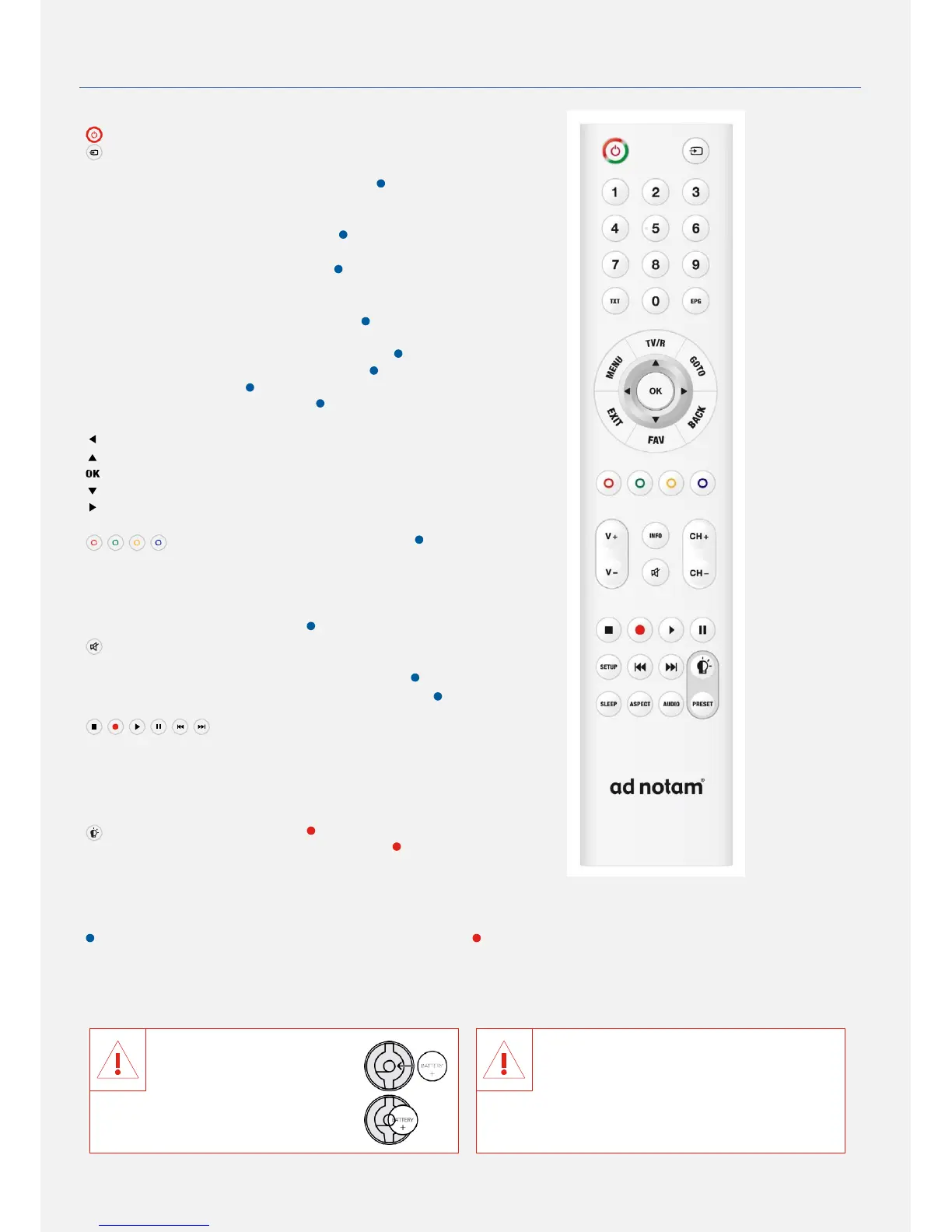 Digits 0 – 9 Select TV program directly