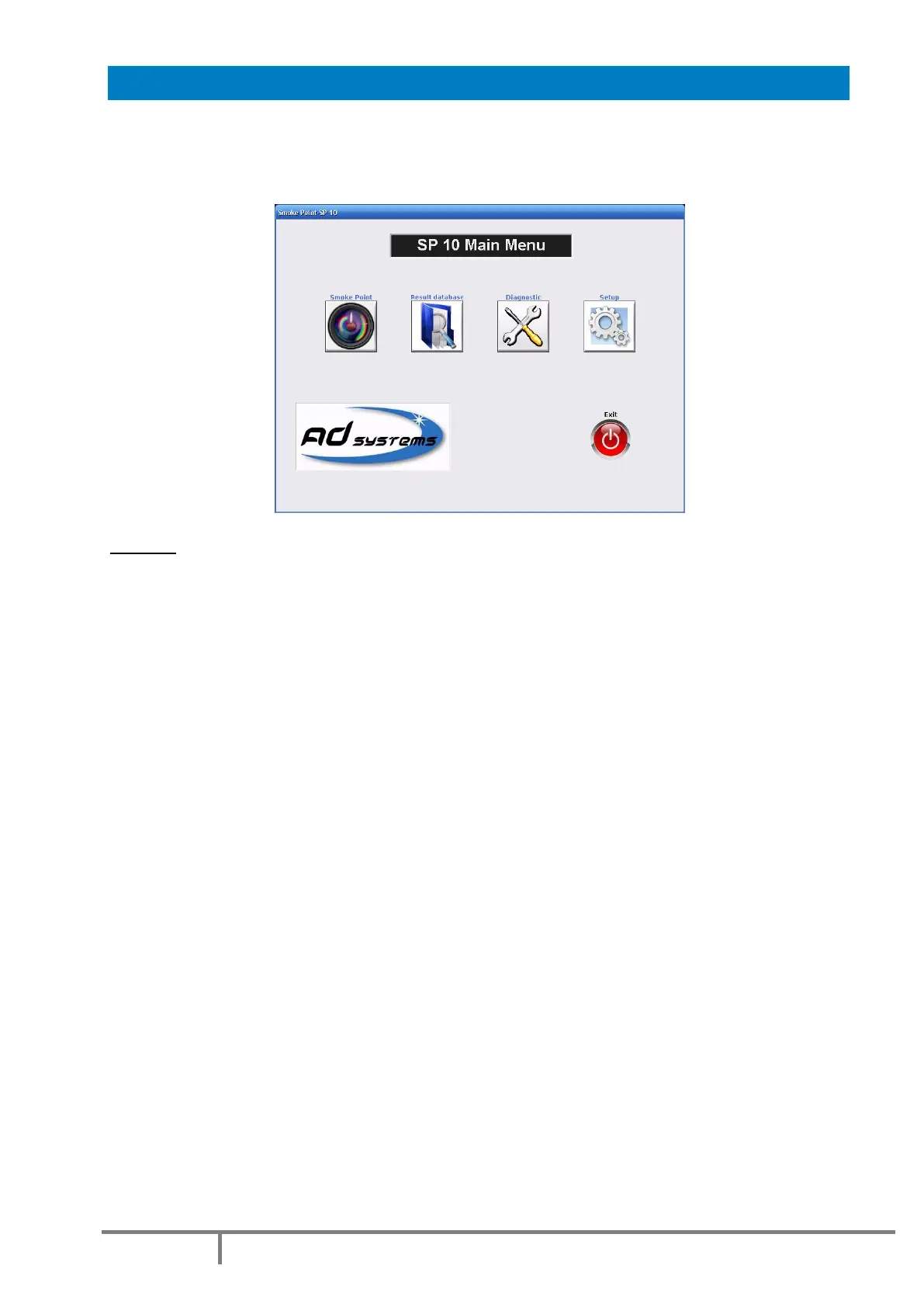 EXIT – to quit the SP 10 application to prepare the instrument switch off.