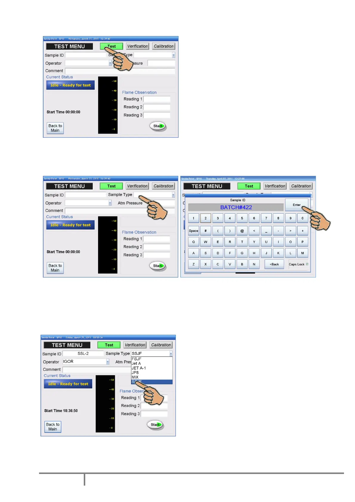 In order to initiate the measurement, the information described here after must be entered.