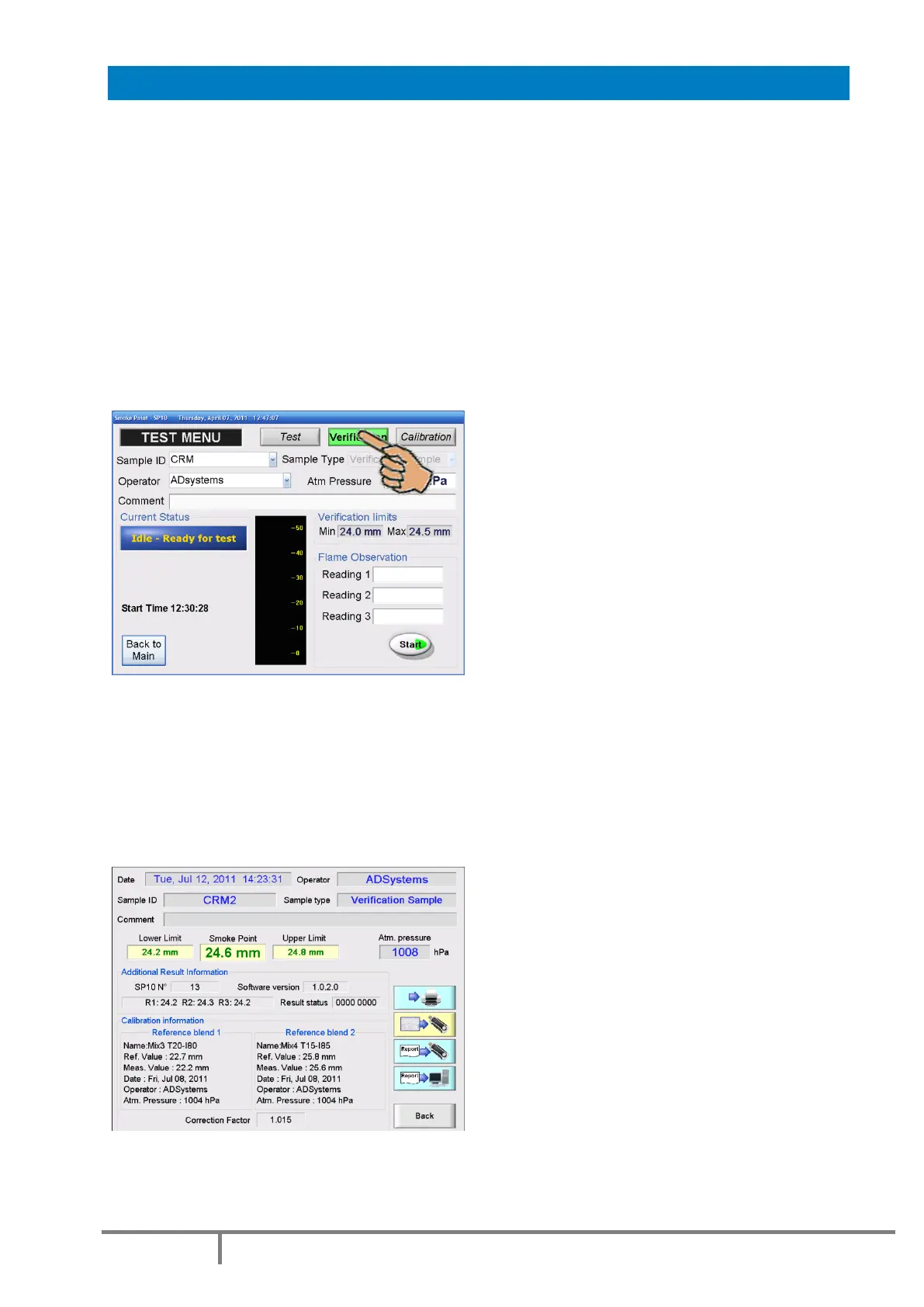 Select in the Test menu the “VERIFICATION” mode and select the name of the control sample