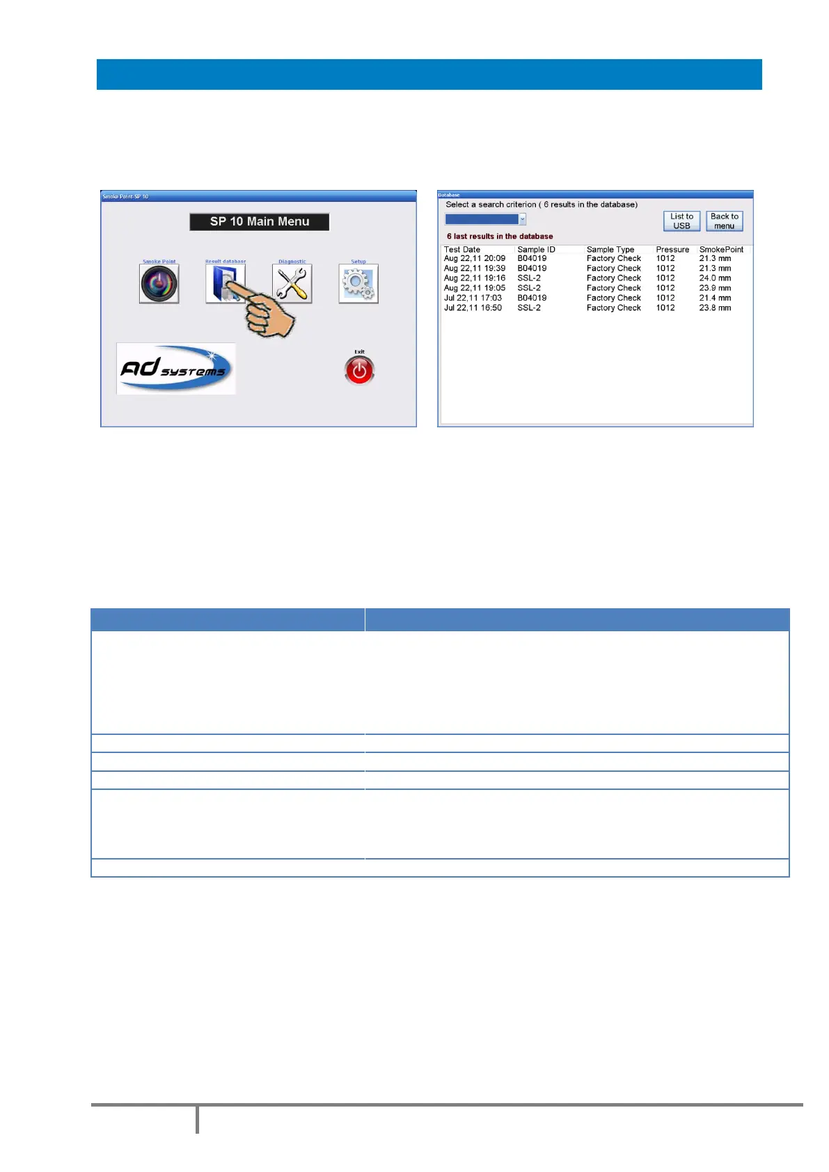 The SP 10 built-in result database allows for test data recording, its future retrieval and visualization.