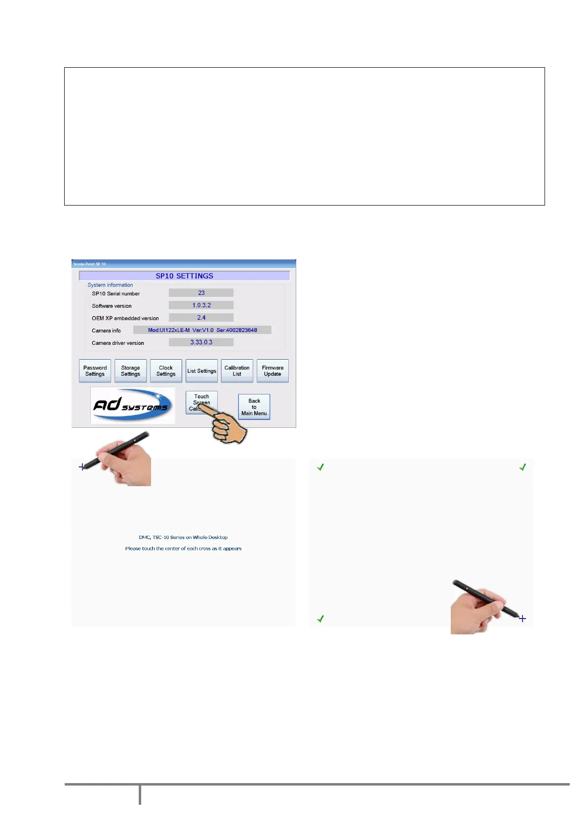 In case of repair or replacement of the touch screen, it needs to be calibrated.