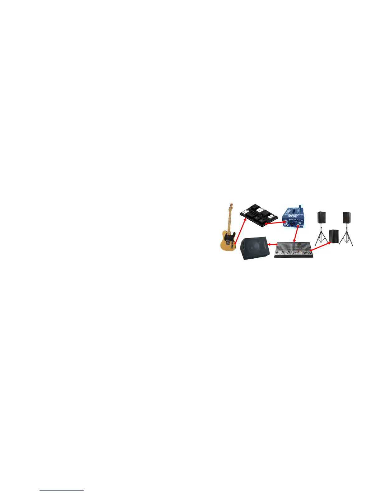 Diagram 1: Guitar to pedal board to GCS-2 to console to monitor speakers and house