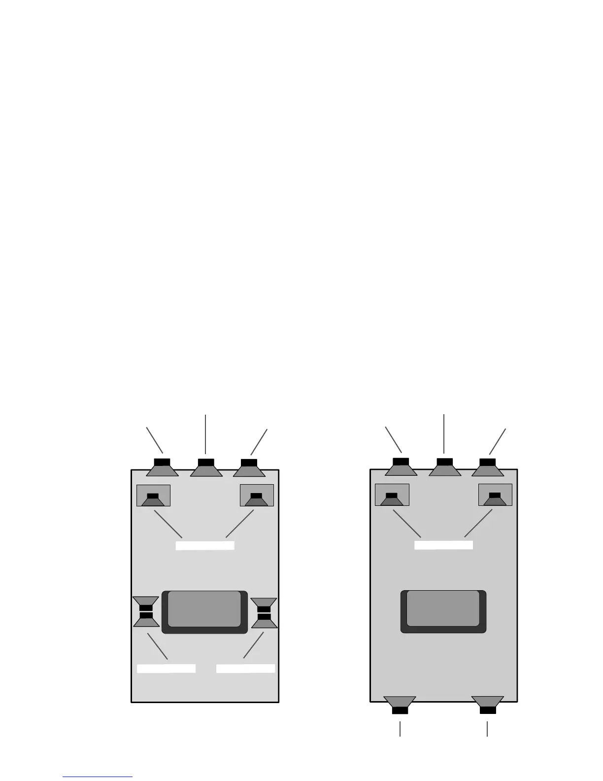 The two diagrams below detail the most common types of surround channel speaker configu-