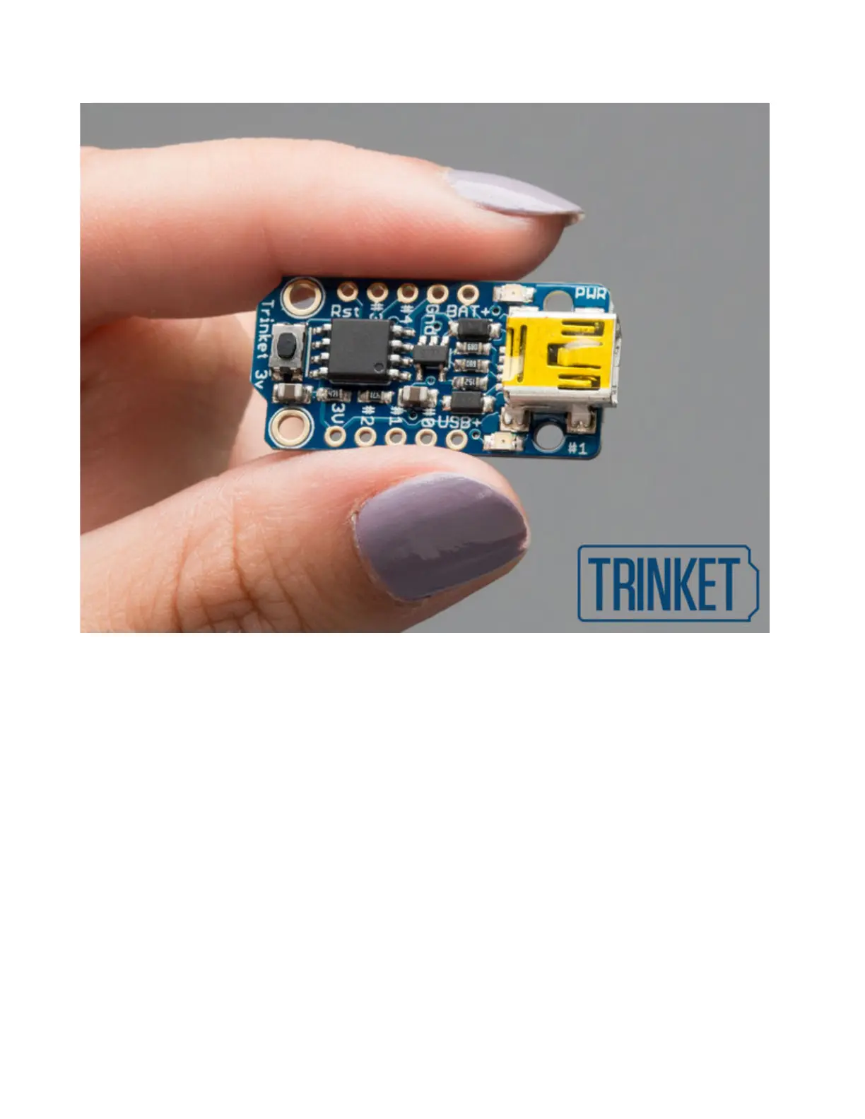 Trinket may be small, but do not be fooled by its size! It's a tiny microcontroller board, built