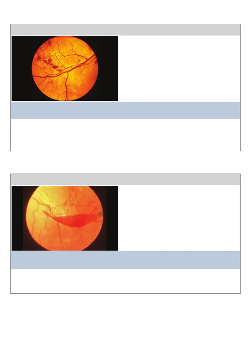 • Renal haemorrhages: ame shaped, dot