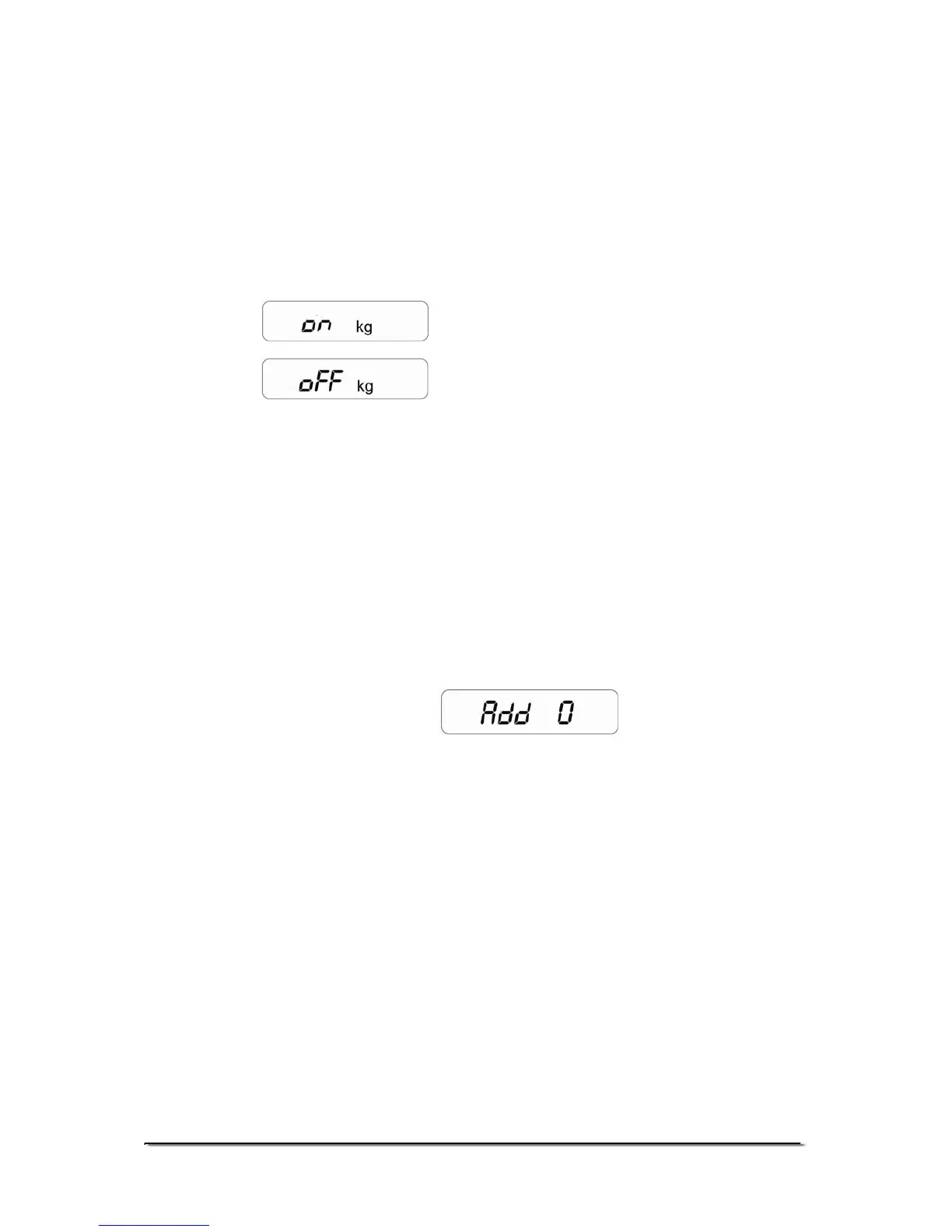 weighing operation. Display will show “on kg” (DEFAULT