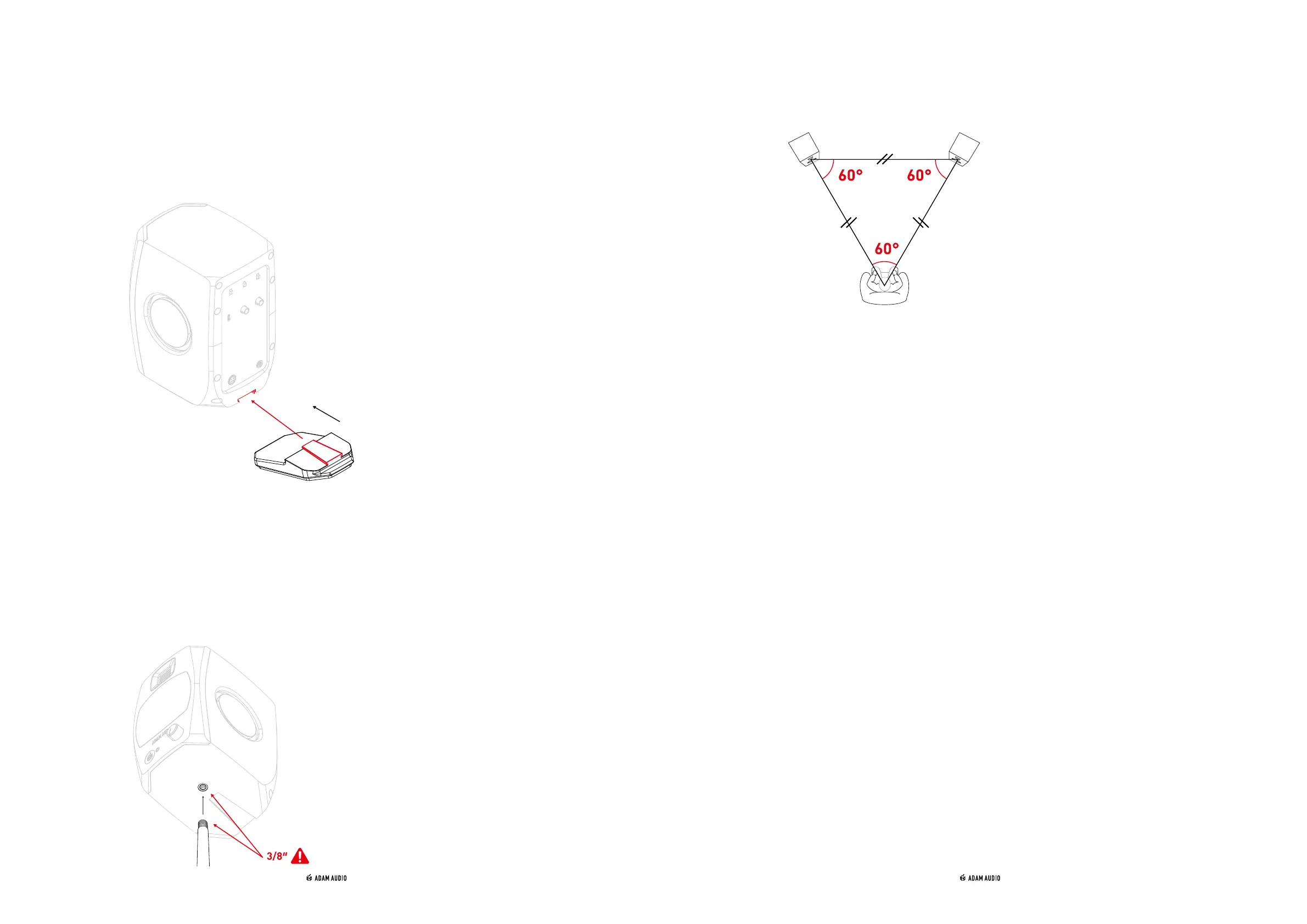 → Use of the included angling feet will tilt the acoustic axis upwards by 15 degrees,