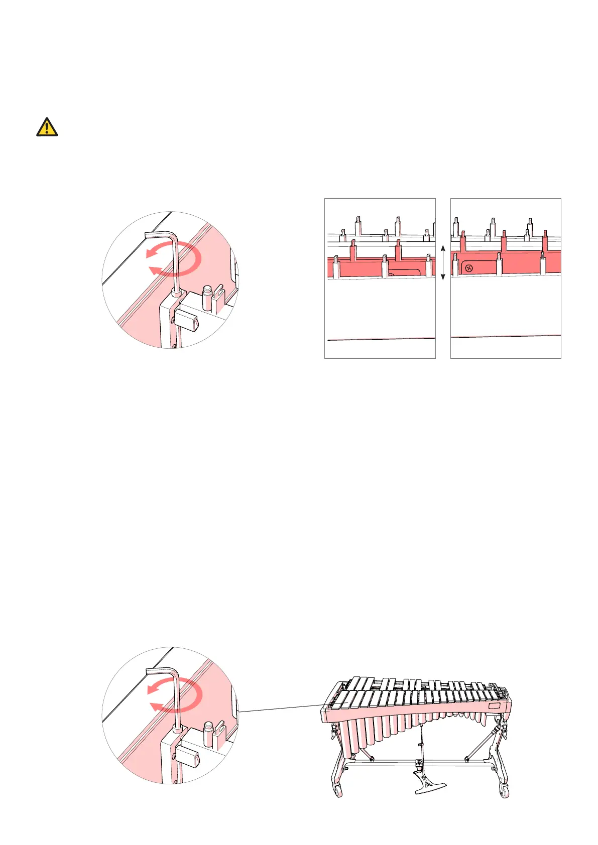 Holm 2 ist höhenverstellbar. Diese Einstellung ermöglicht eine Übereinstimmung der Dämpfung der Ganzton-Klangplatten, mit der