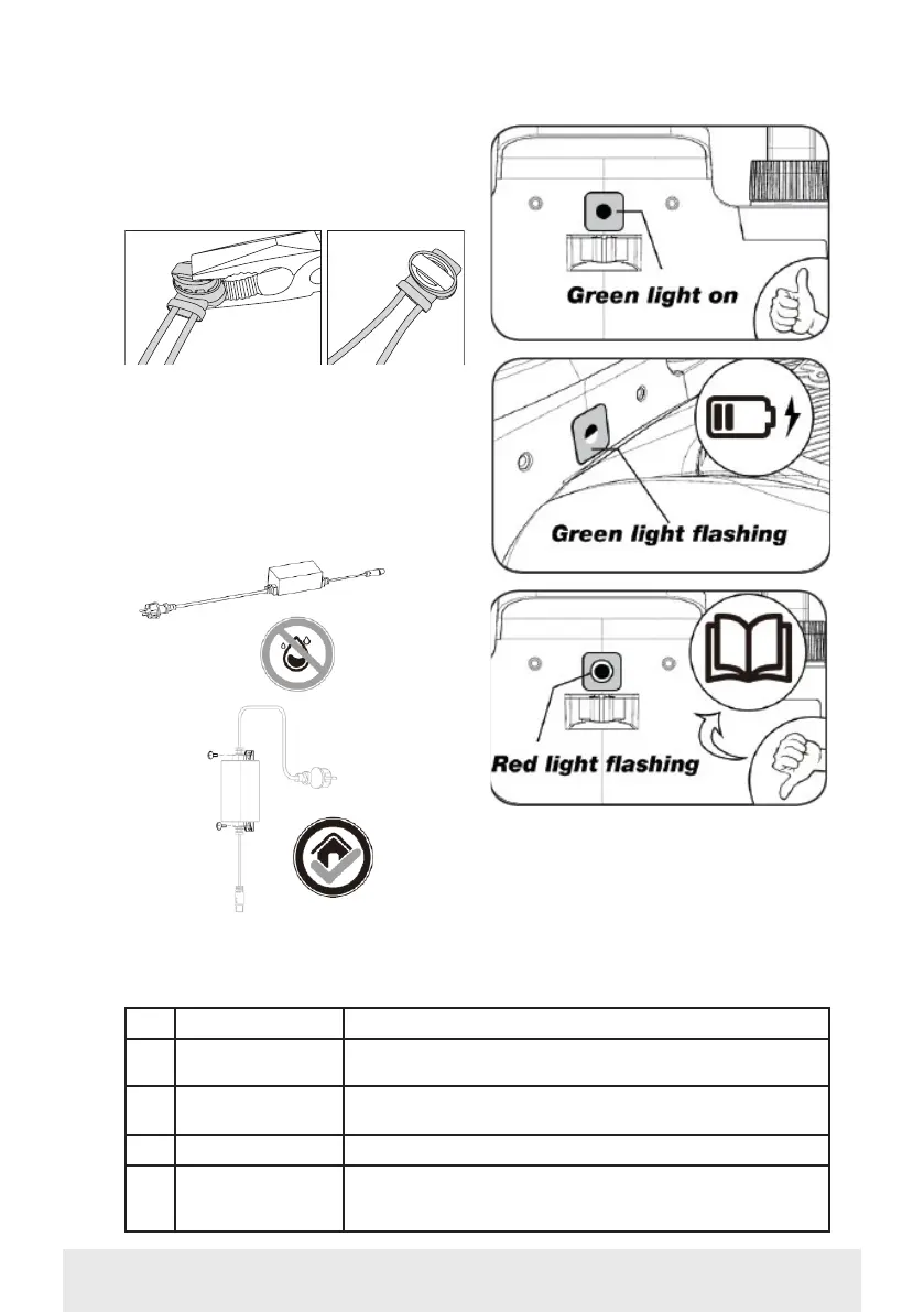 4 Rødt lys blinker Agrænsningskabel er ikke monteret korrekt i det røde/sorte stik