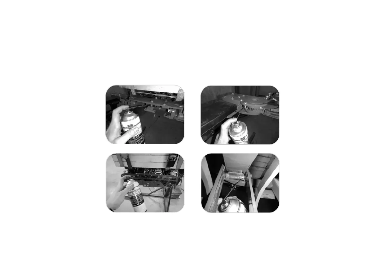 of all moving parts. Moving parts should be cleaned and greased using petroleum based liquid spray grease.