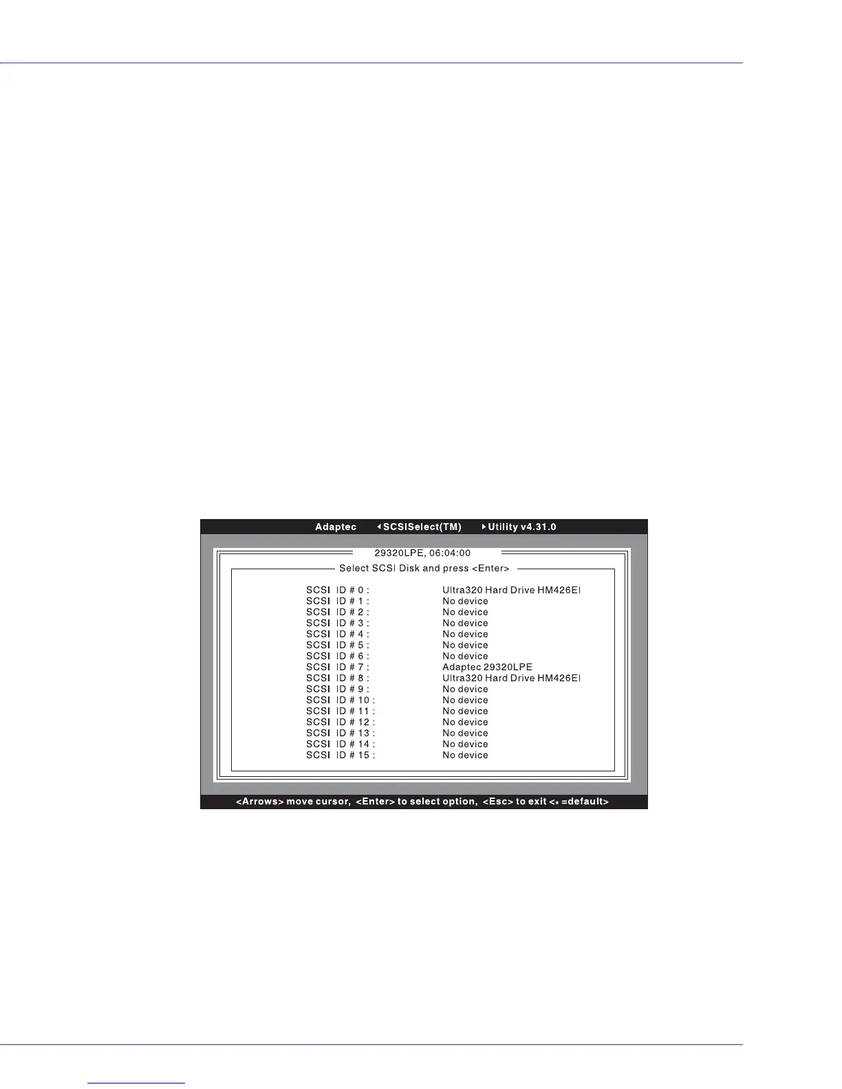 SCSI IDs and the devices assigned to each ID.