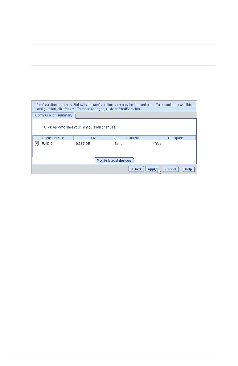 Adaptec Storage Manager builds the logical drive(s).