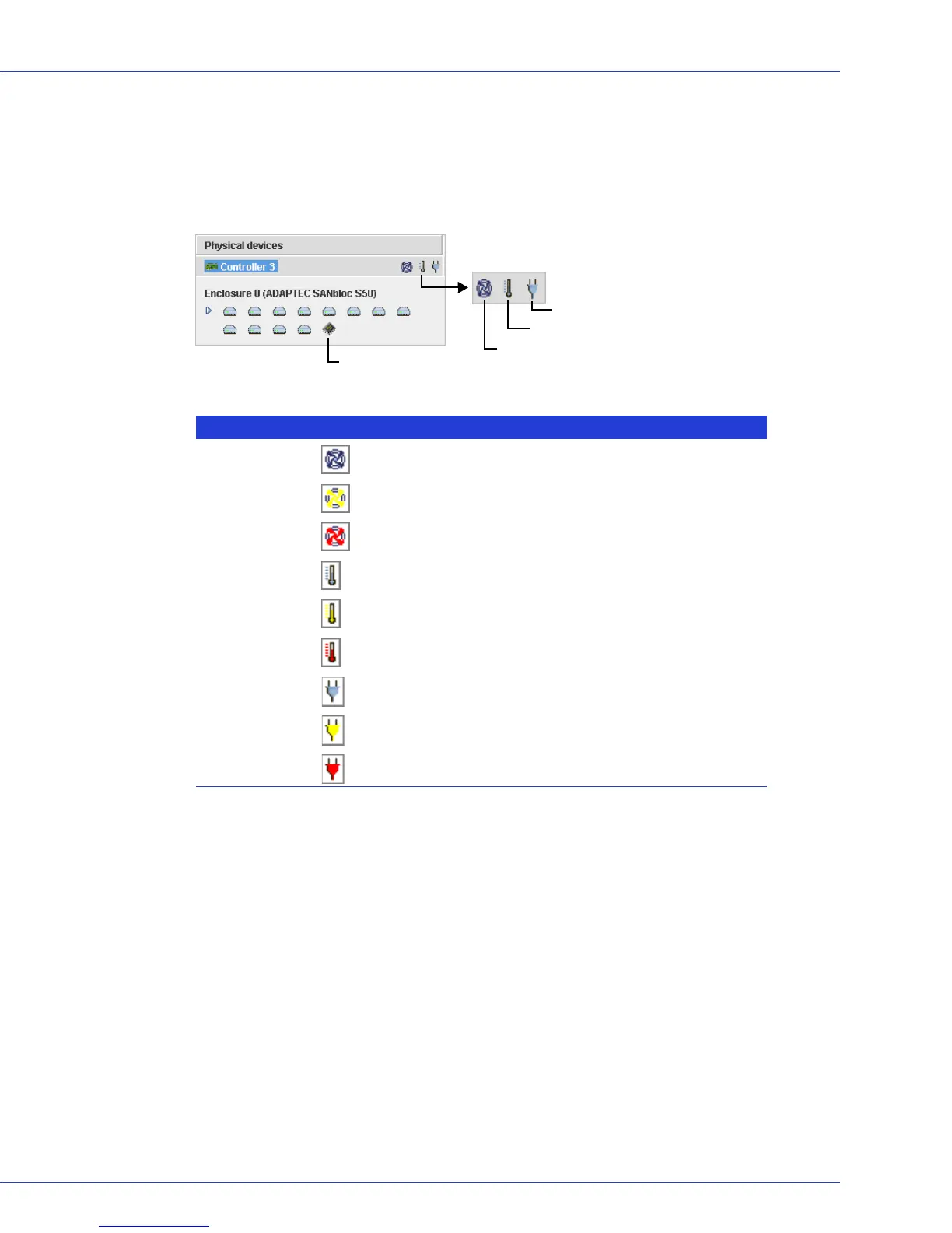 If your enclosure does not have an enclosure management device, the status icons appear