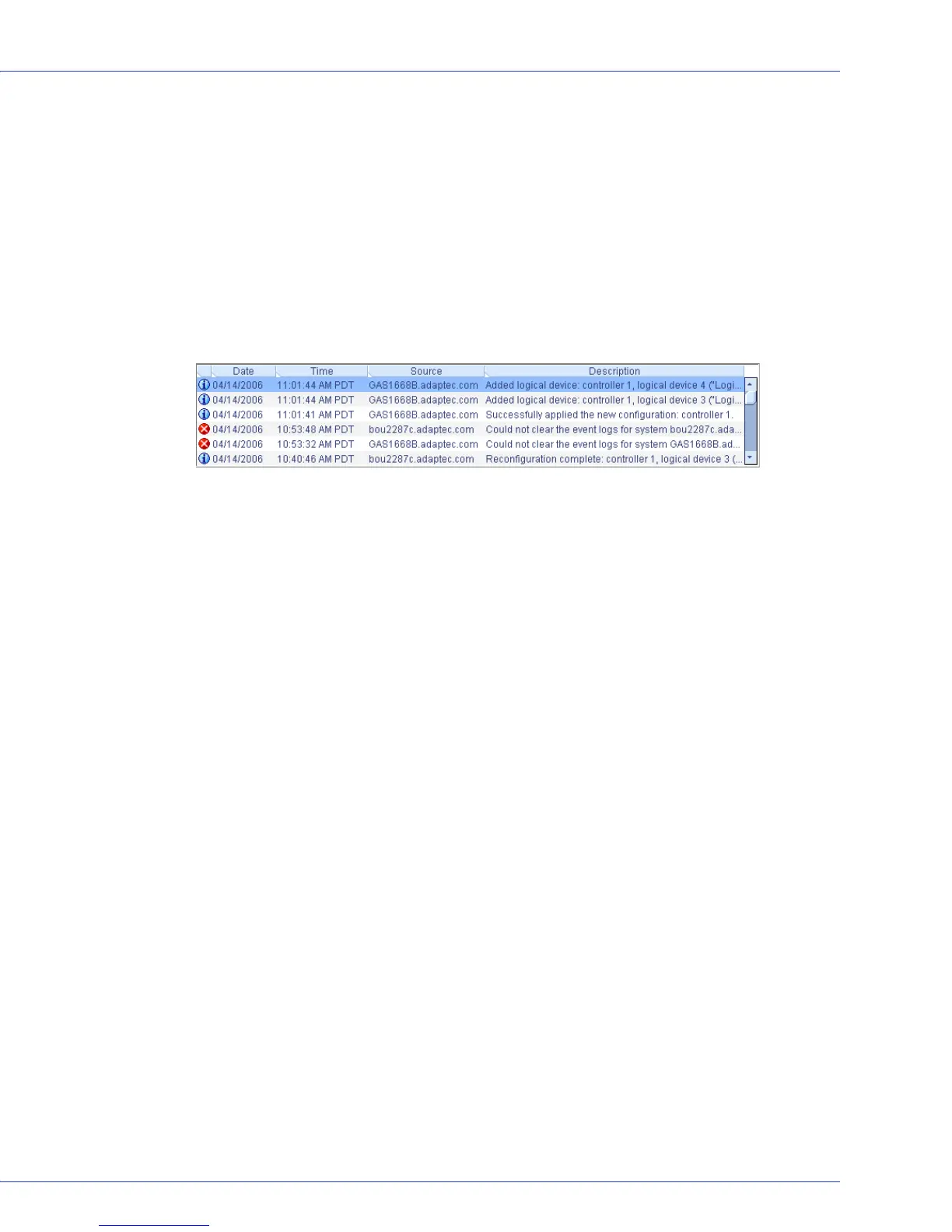 You can set up Adaptec Storage Manager to send messages to the event log of selected remote