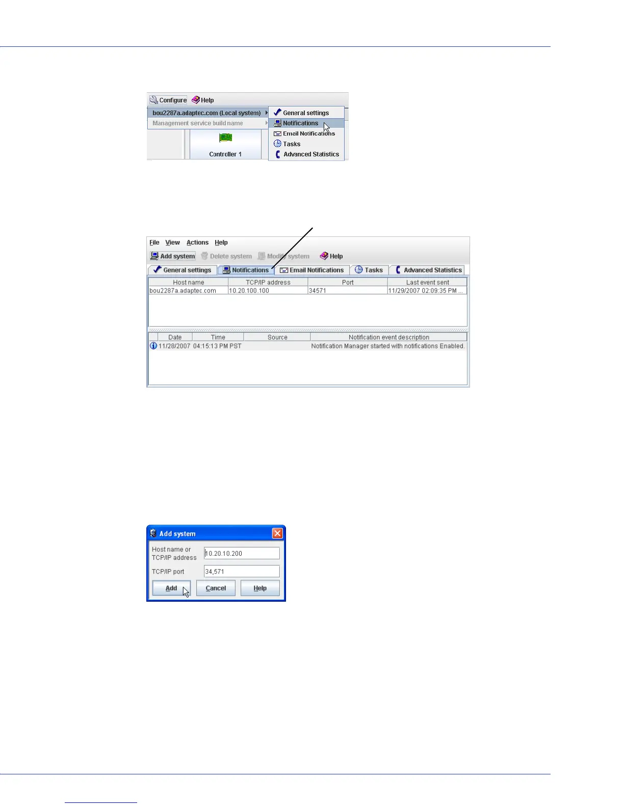 3 On the tool bar, click Configure, point to the system, then click Notifications.