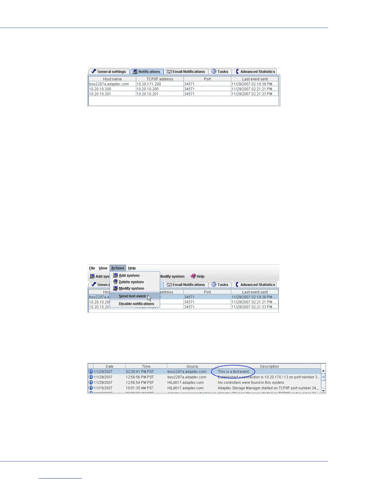 To ensure that a system is receiving logged notifications, you can send a test event.