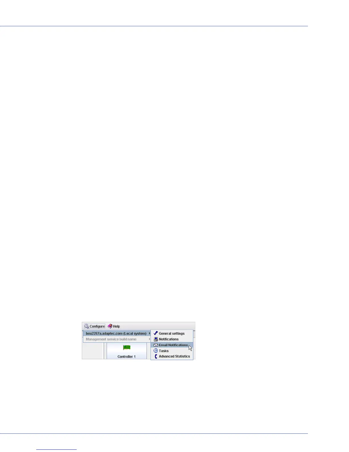 You can set up Adaptec Storage Manager to send email messages (or notifications) to a selected