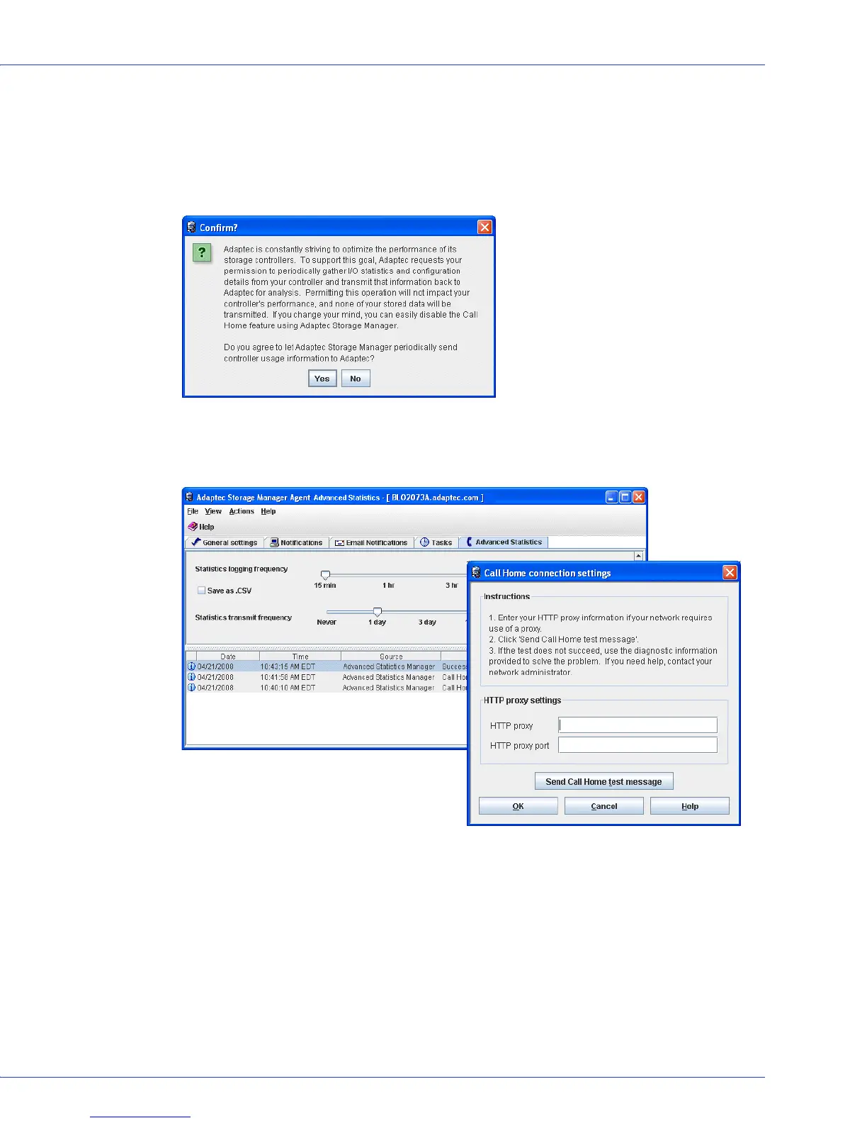 periodically “calls home,” and sends the data to Adaptec or another designated contact for